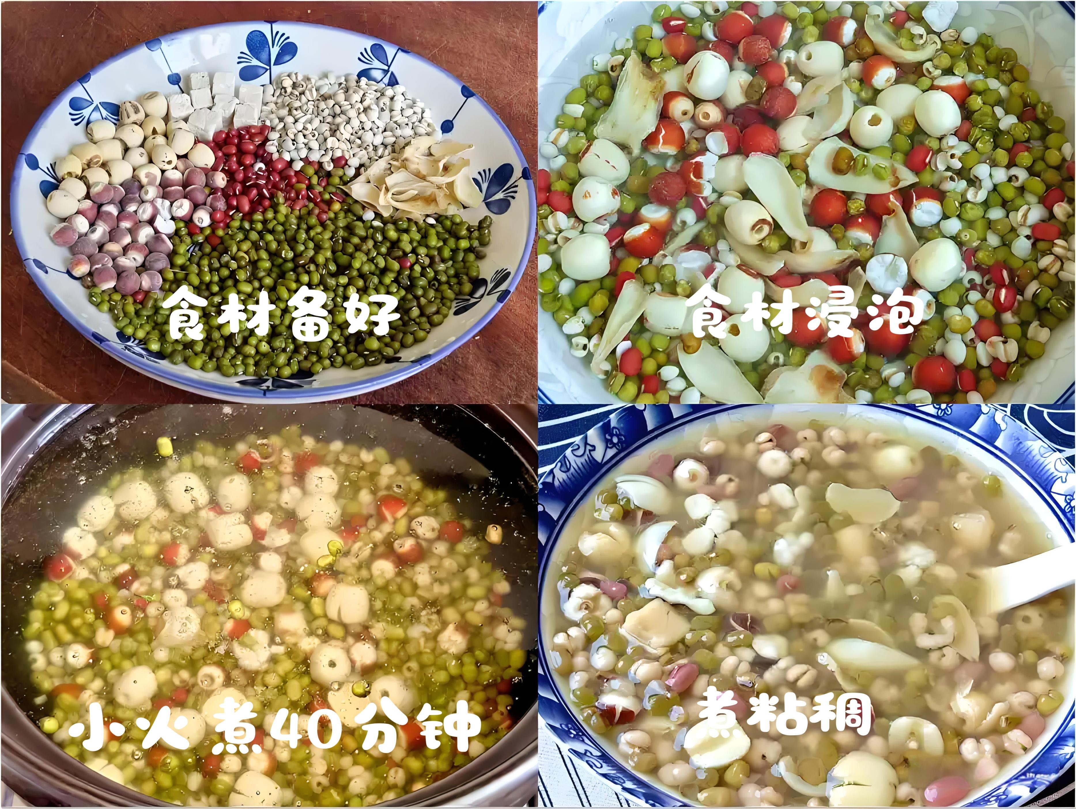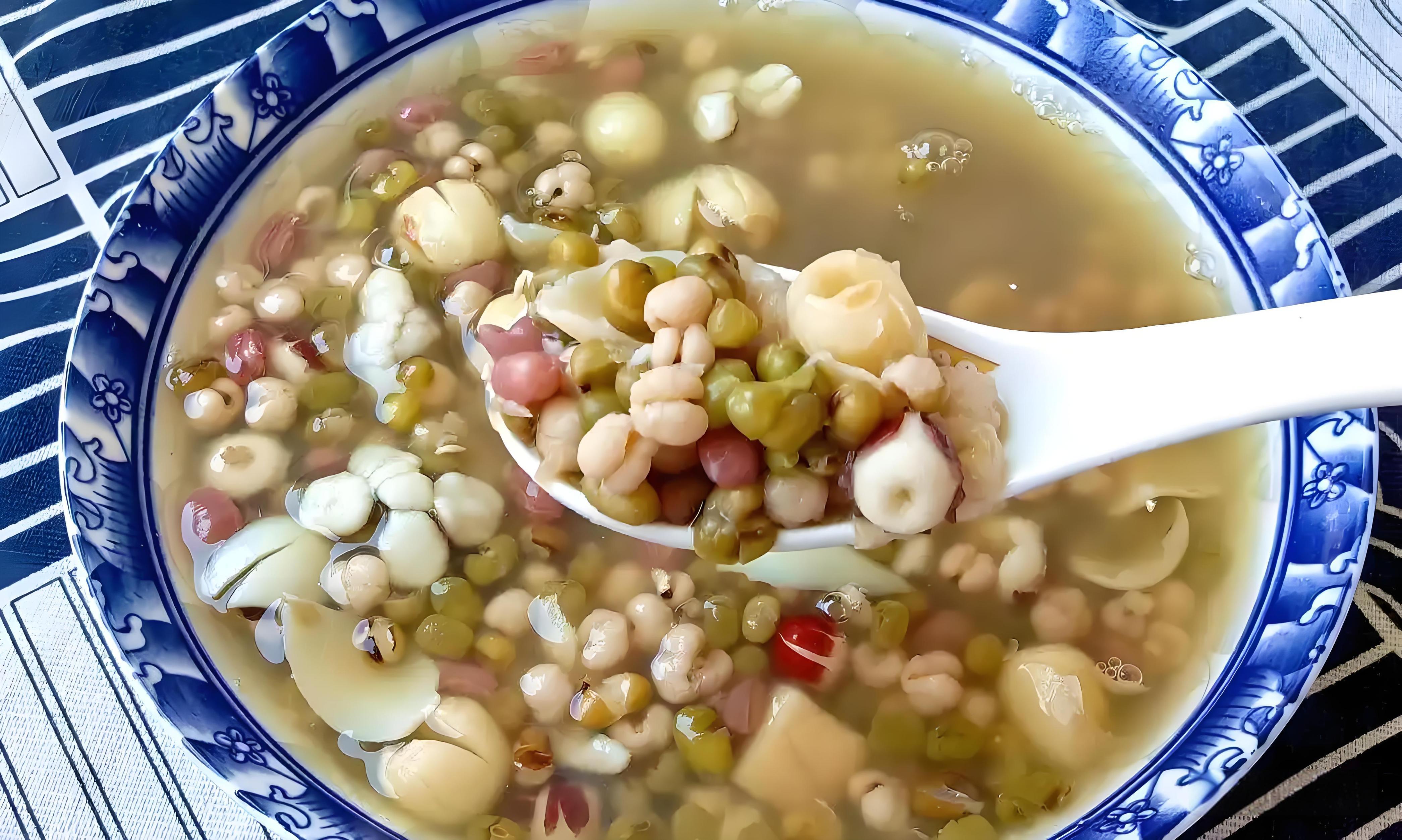 薏米祛溼,紅豆助力健脾利水,芡實蓮子這對“健脾固腎兄弟”能幫咱把溼氣排得更徹底。百合清清心潤潤燥,綠豆解解暑熱。一碗湯下去,彷彿給睏倦的脾胃做了一次溫和的“乾燥護理”,對付三伏天常見的食慾差、大便黏糊糊最是對症。