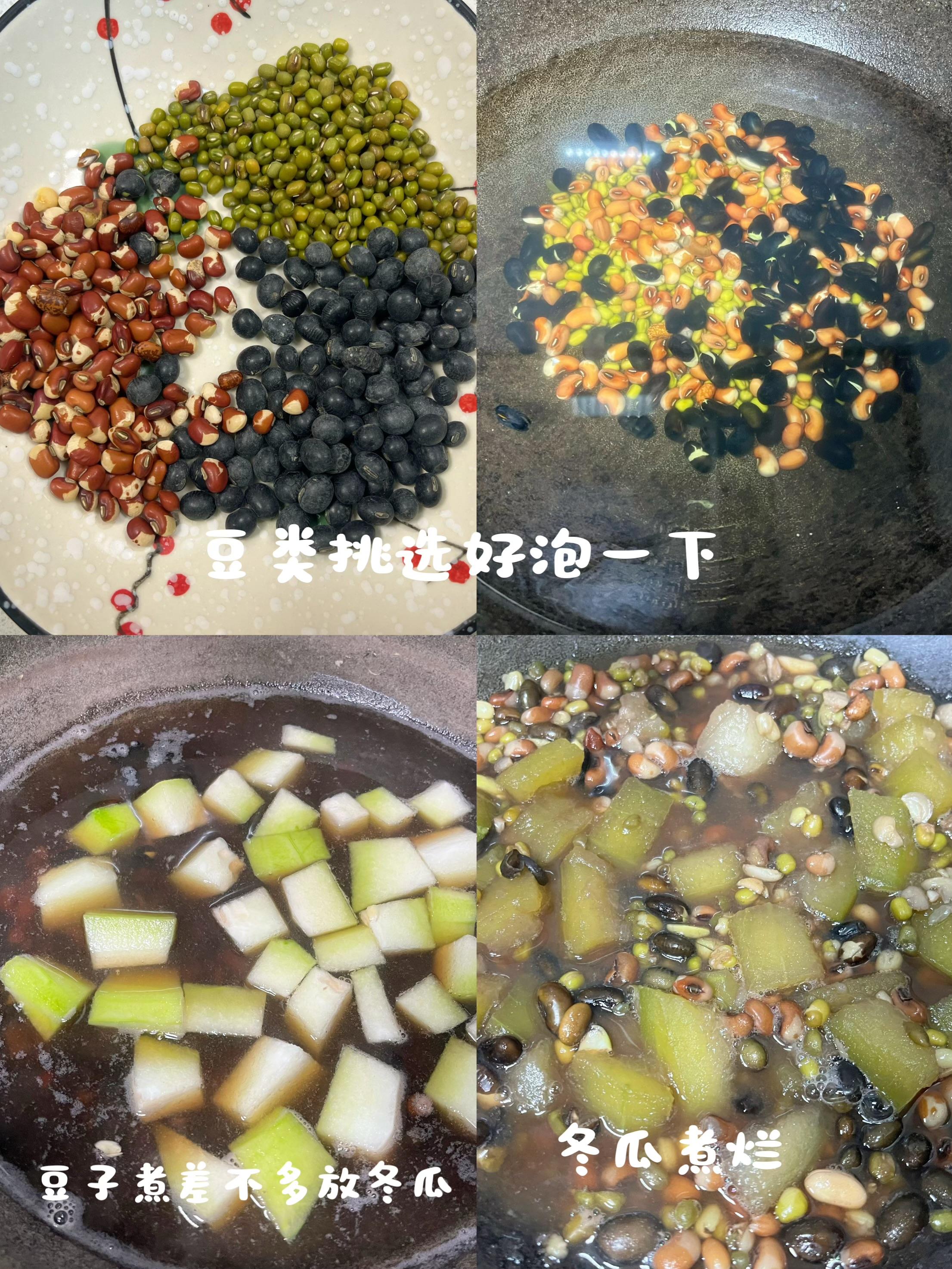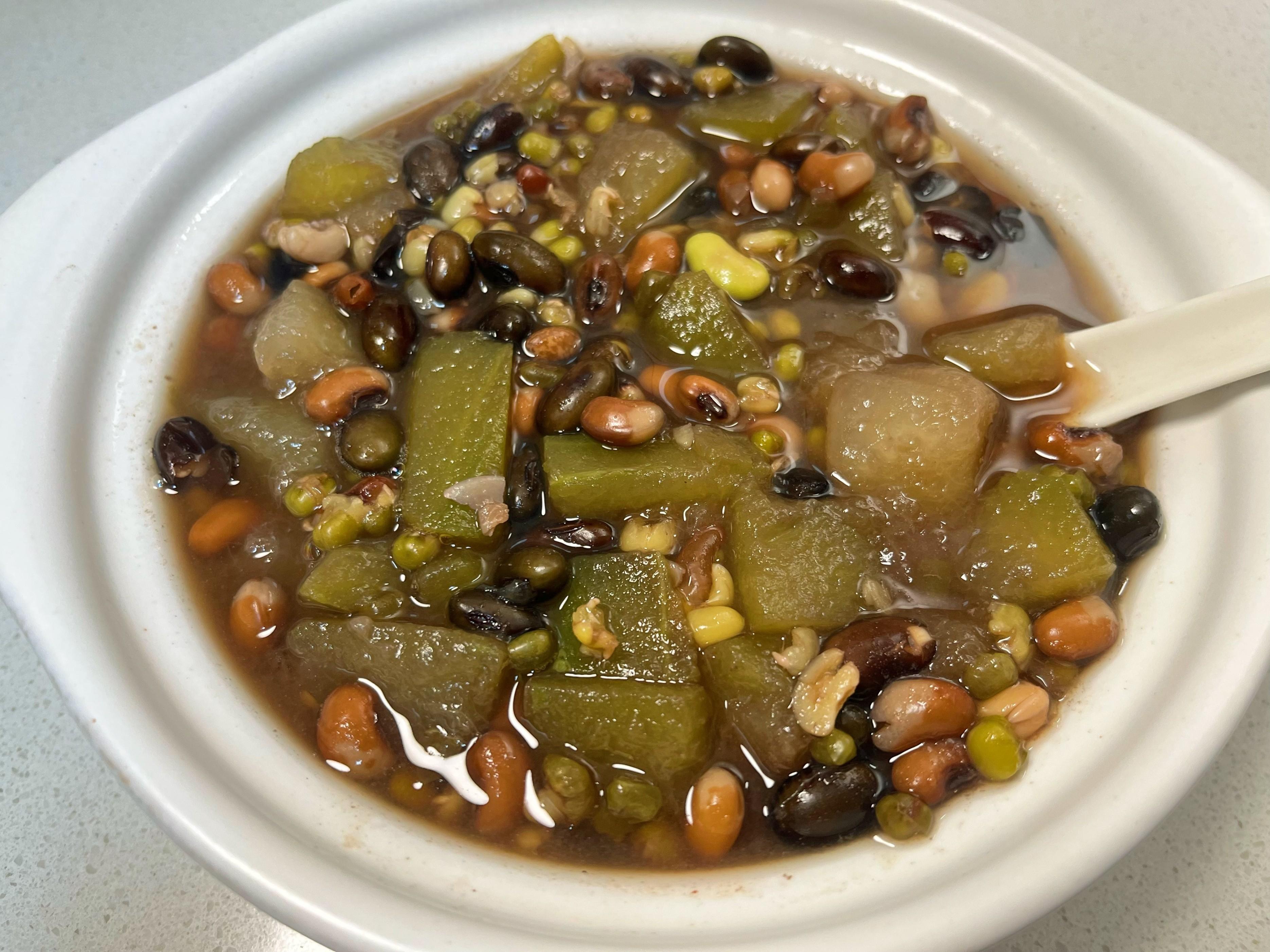 赤小豆祛溼消腫是行家,綠豆解暑毒、黑豆補點腎氣,冬瓜更是“祛溼小能手”,性子溫和得很。幾種豆子冬瓜同煮,清清爽爽一碗下肚,就像悶熱的午後吹來一陣穿堂風,特別適合覺得身子發沉、腿腳發脹、小便也不太利索的時候喝。