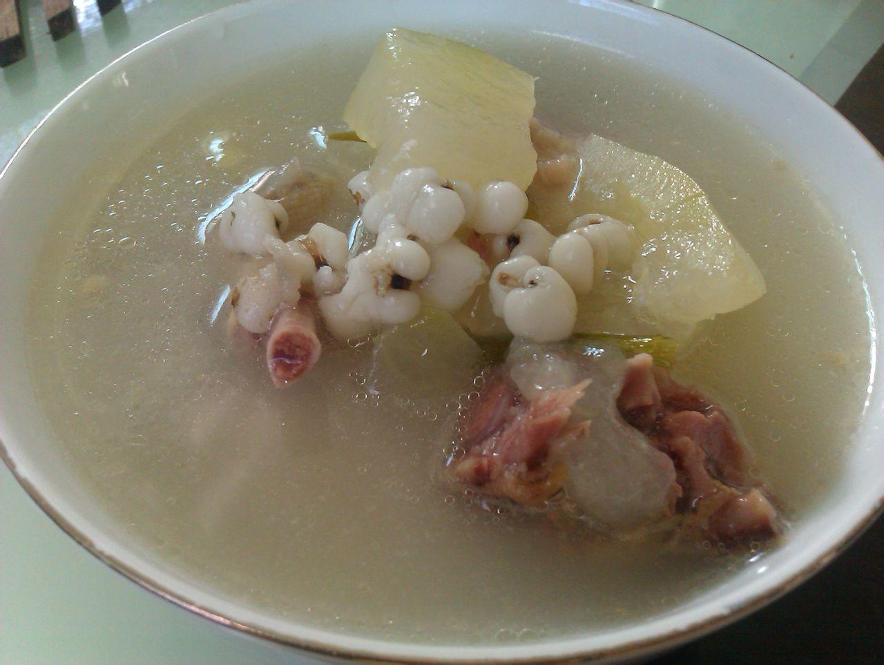 食材;鴨肉半隻,冬瓜1塊,薏米1把,鹽, 胡椒粉,蔥, 姜