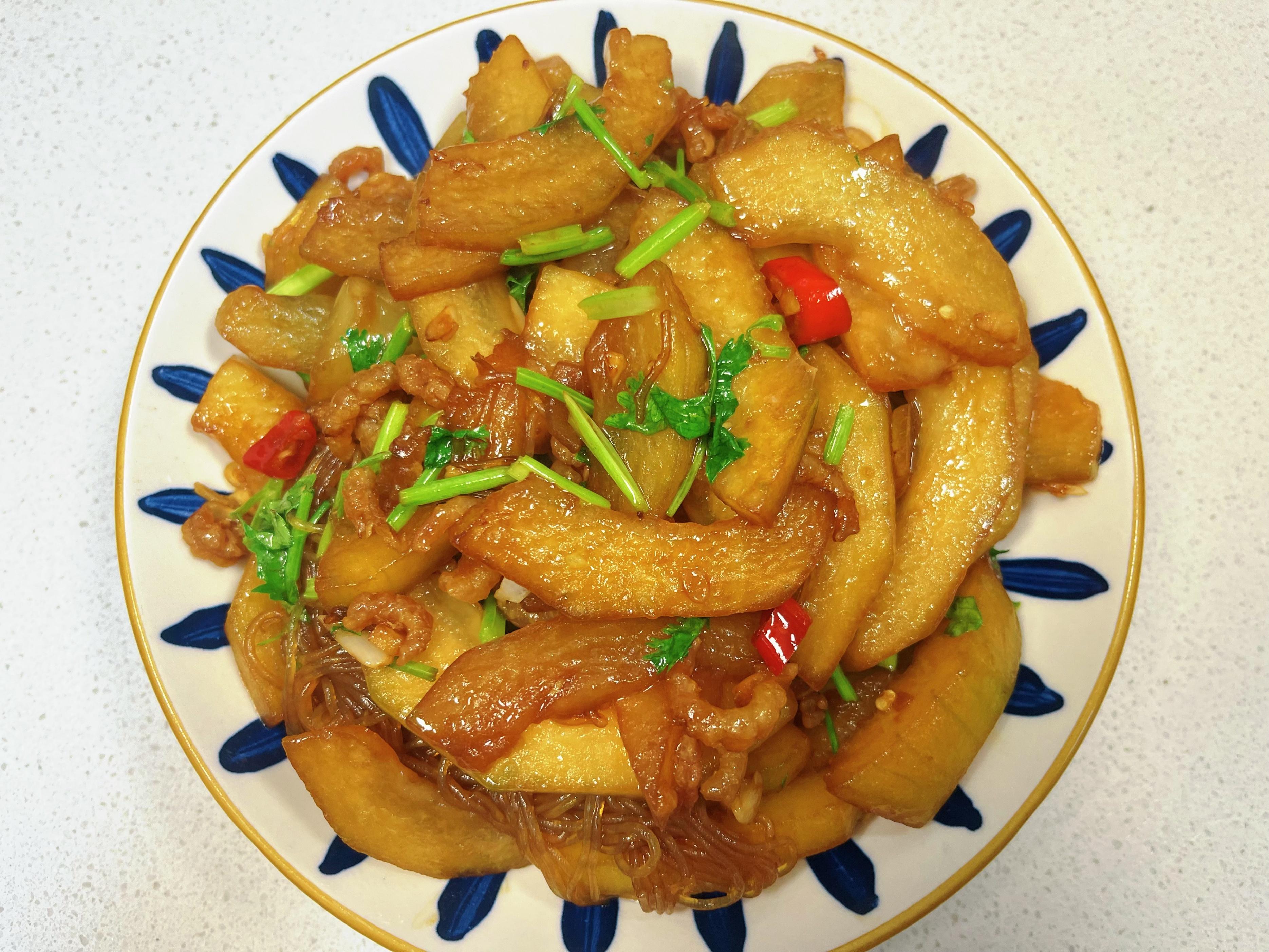 4、打開鍋蓋,看湯汁收得差不多了,加適量鹽(蝦皮有鹹味,鹽要少!)、一點點白胡椒粉提鮮,撒上蔥花,翻炒均勻即可出鍋。鮮香軟糯,湯都能拌飯!