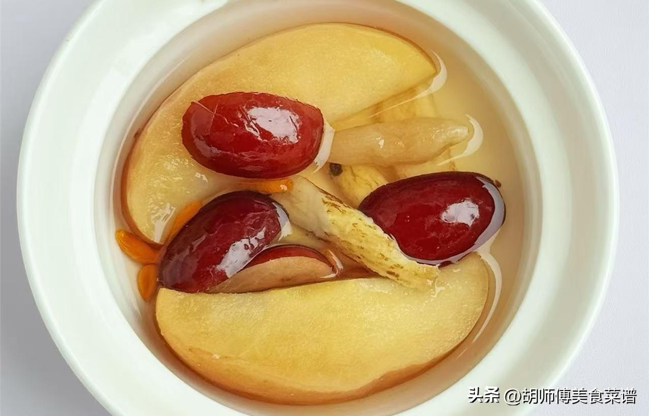 【食材準備】:青蘋果1個、黃芪3克、麥冬3克、紅棗5克。