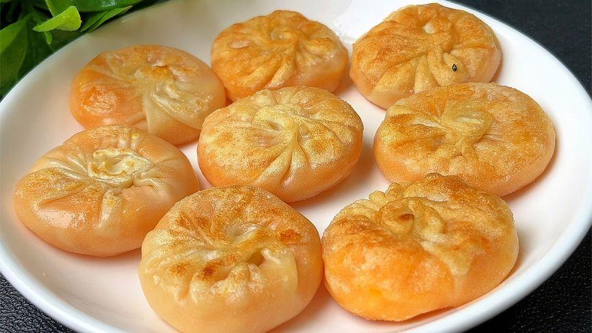 3、平底鍋裏刷上食用油,油熱放入紅薯餅,煎至兩面金黃,表皮酥脆,煎就可以出鍋啦。紅薯芝士餅就做好了。