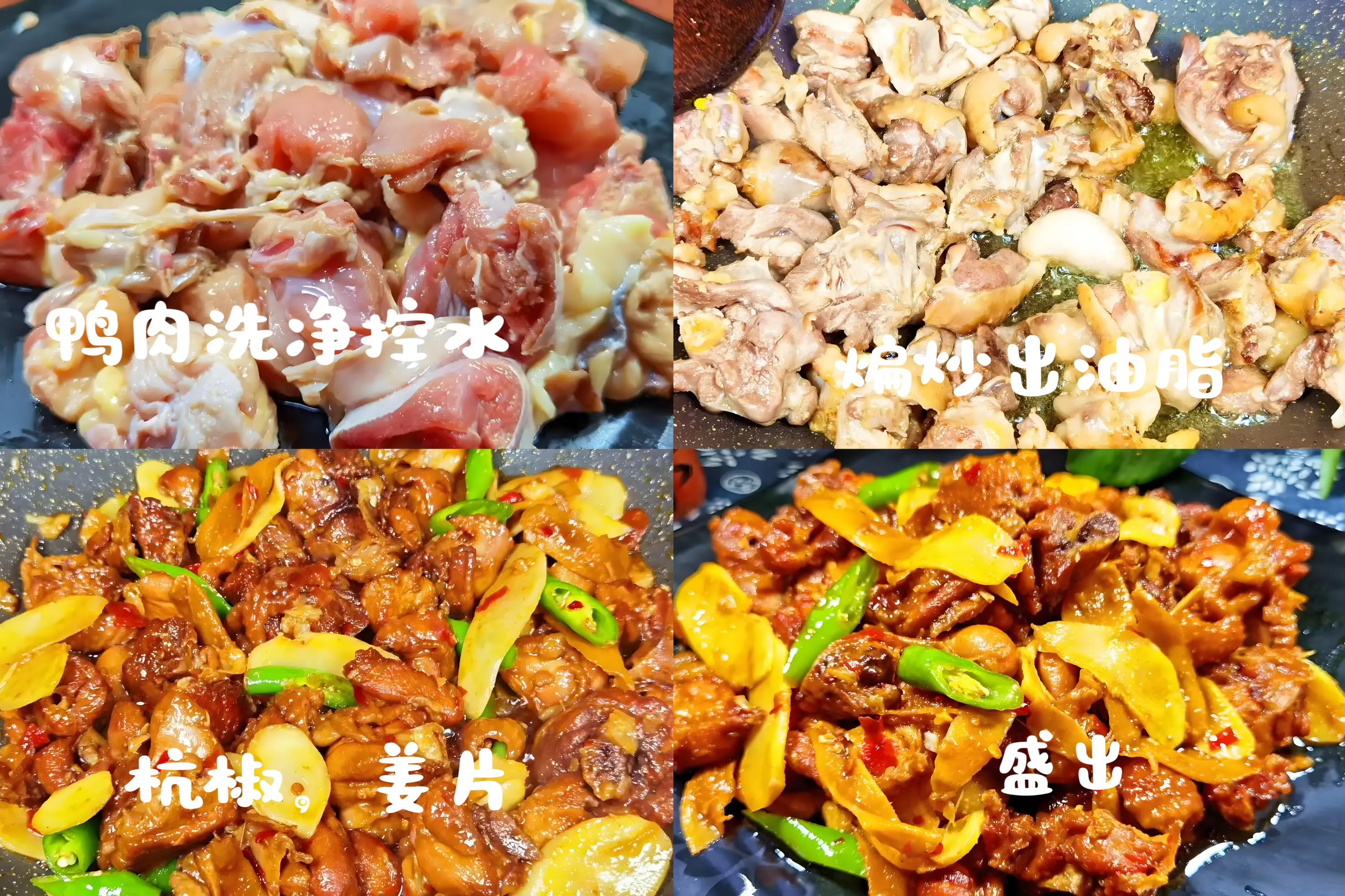 1、鴨肉剁塊,冷水下鍋,加薑片、料酒,大火煮開撇去浮沫,撈出洗淨瀝乾。這一步有效去除鴨腥味。