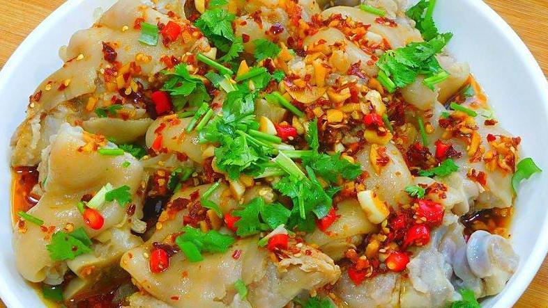 2、好喫的關鍵就是倒入這個口水雞料汁,其他什麼調料都不用放,翻拌均勻即可開喫。