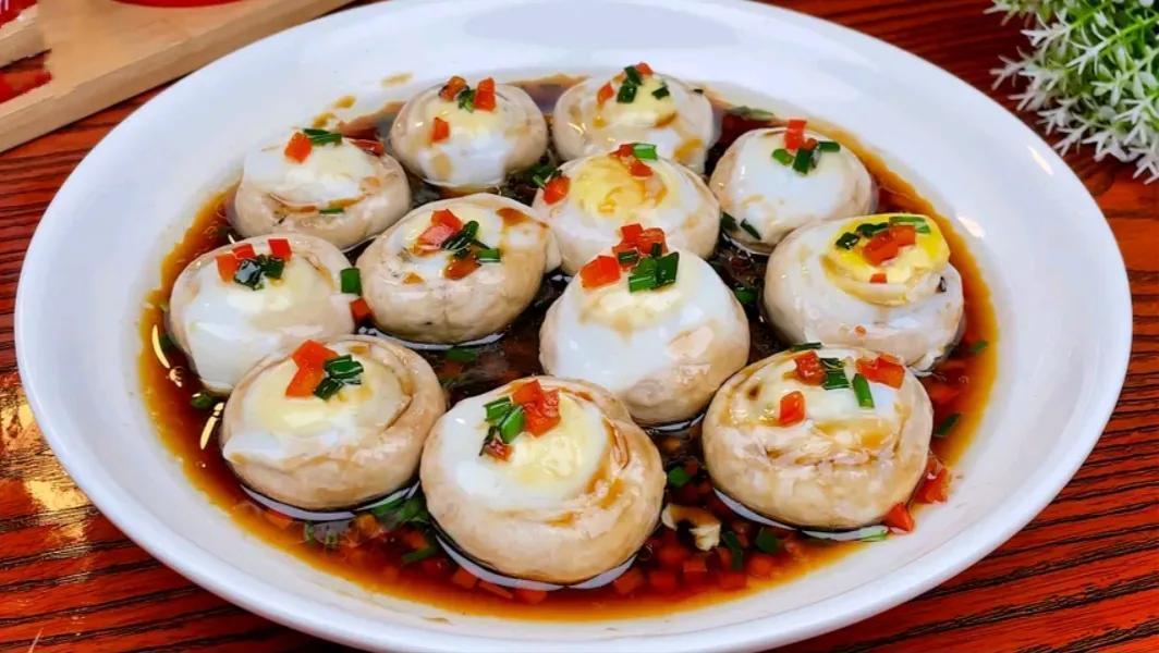 1、首先準備幾朵口蘑,搓洗乾淨。整齊擺放在盤中,然後每個口蘑上打上一個鵪鶉蛋,全部打好後,把盤子放入蒸屜裏,蓋上蓋子,水開後蒸五分鐘。