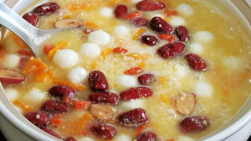 2、南瓜切成片,小米清洗幾遍,放進鍋中煮到小米軟爛,然後再放入紅棗、枸杞、山藥球,繼續小火煮到軟爛,放入冰糖 煮入味,紅棗山藥粥就做好了。