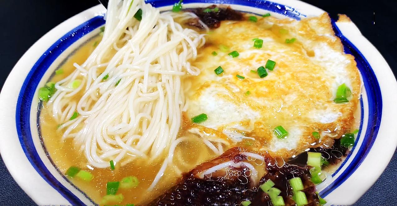 2、鍋中燒油,煎一個荷包蛋,煎好之後倒開水煮開,再下入麪粉煮熟,盛入碗中即可。