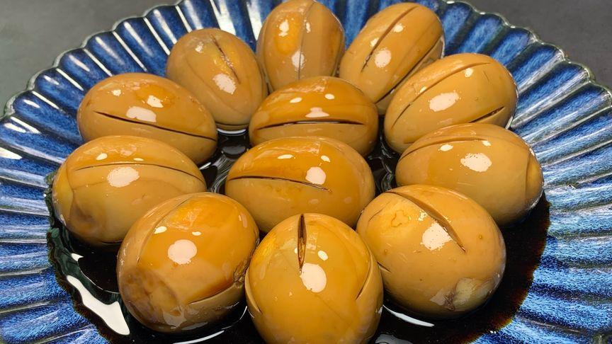 1、洗淨的雞蛋放進鍋中,大火煮開,再調成小火燜10分鐘左右,煮熟之後取出,放進涼水裏面,剝掉外皮,用牙籤將雞蛋給扎一下,打上花刀,更易入味。