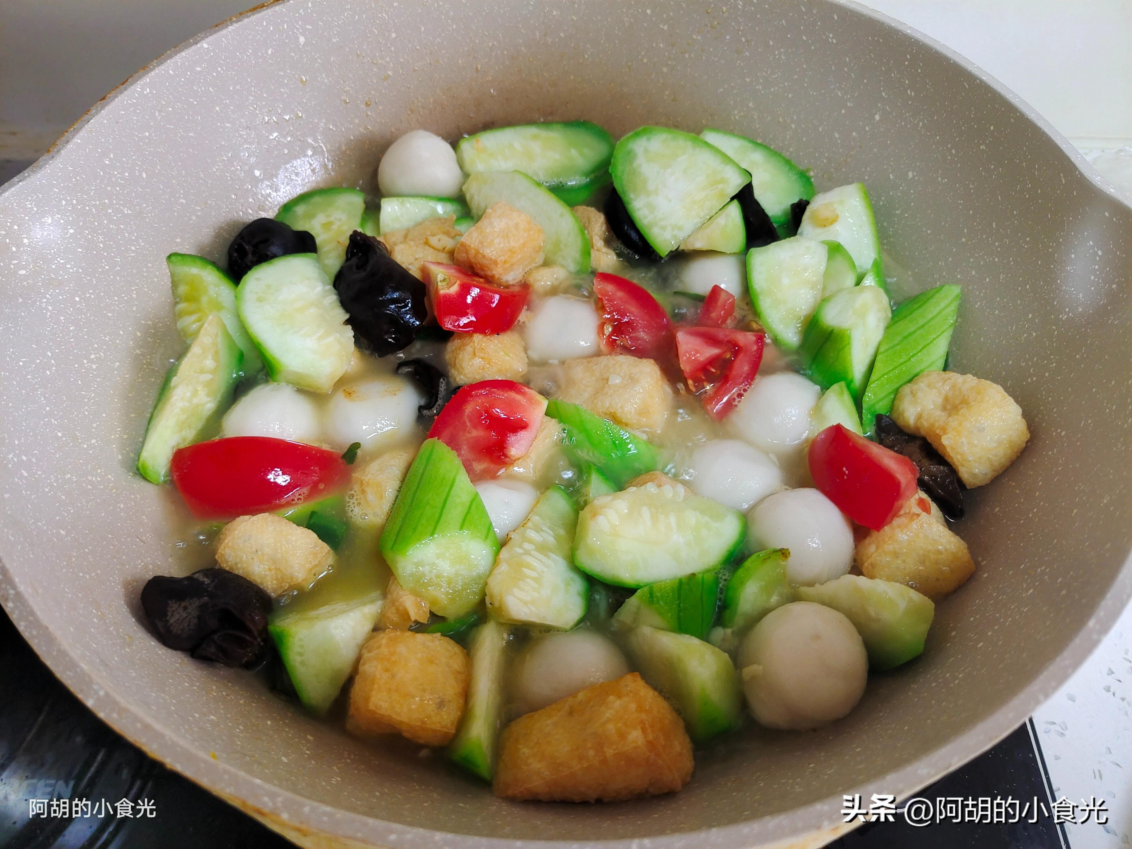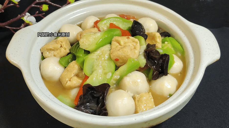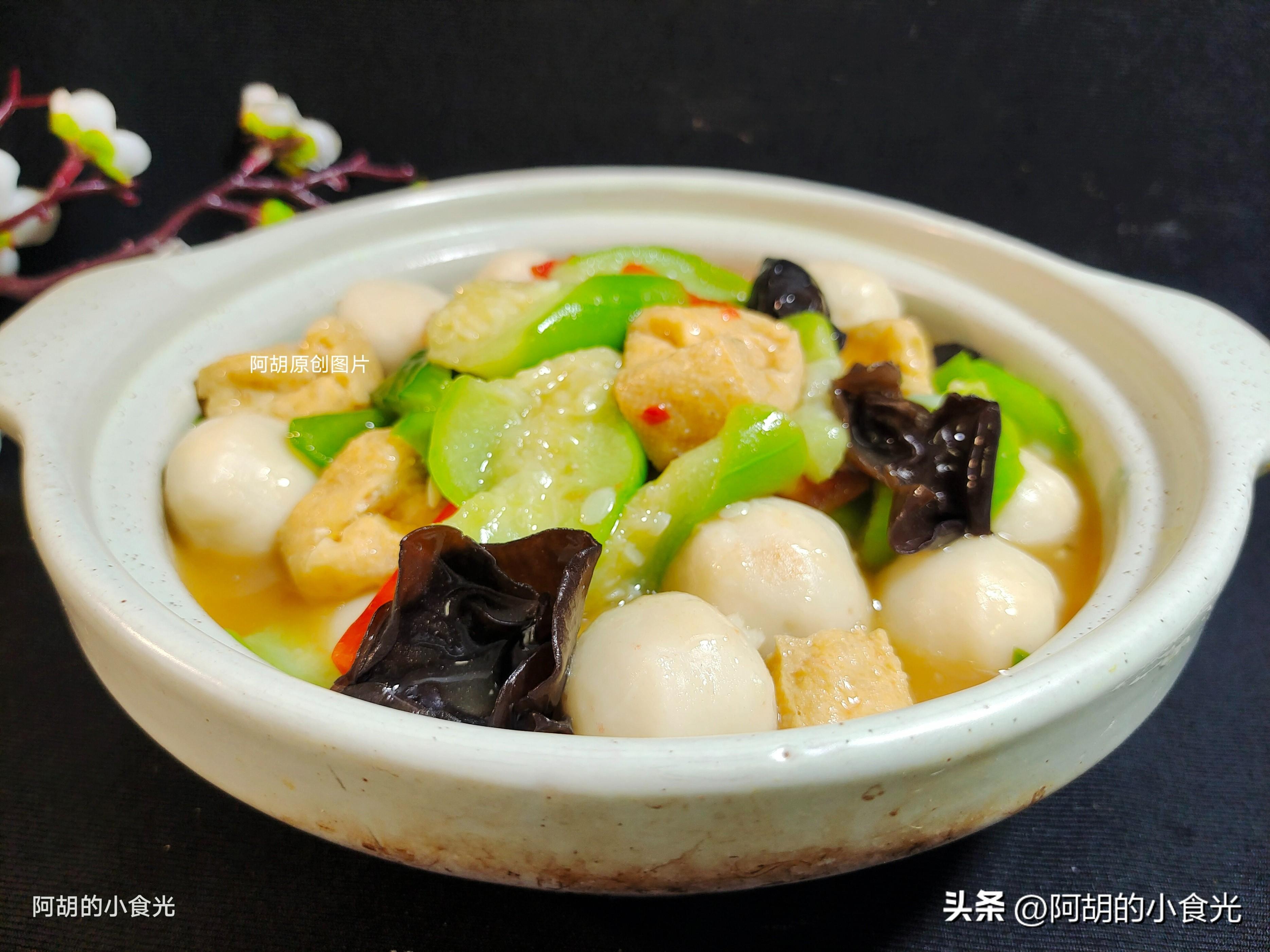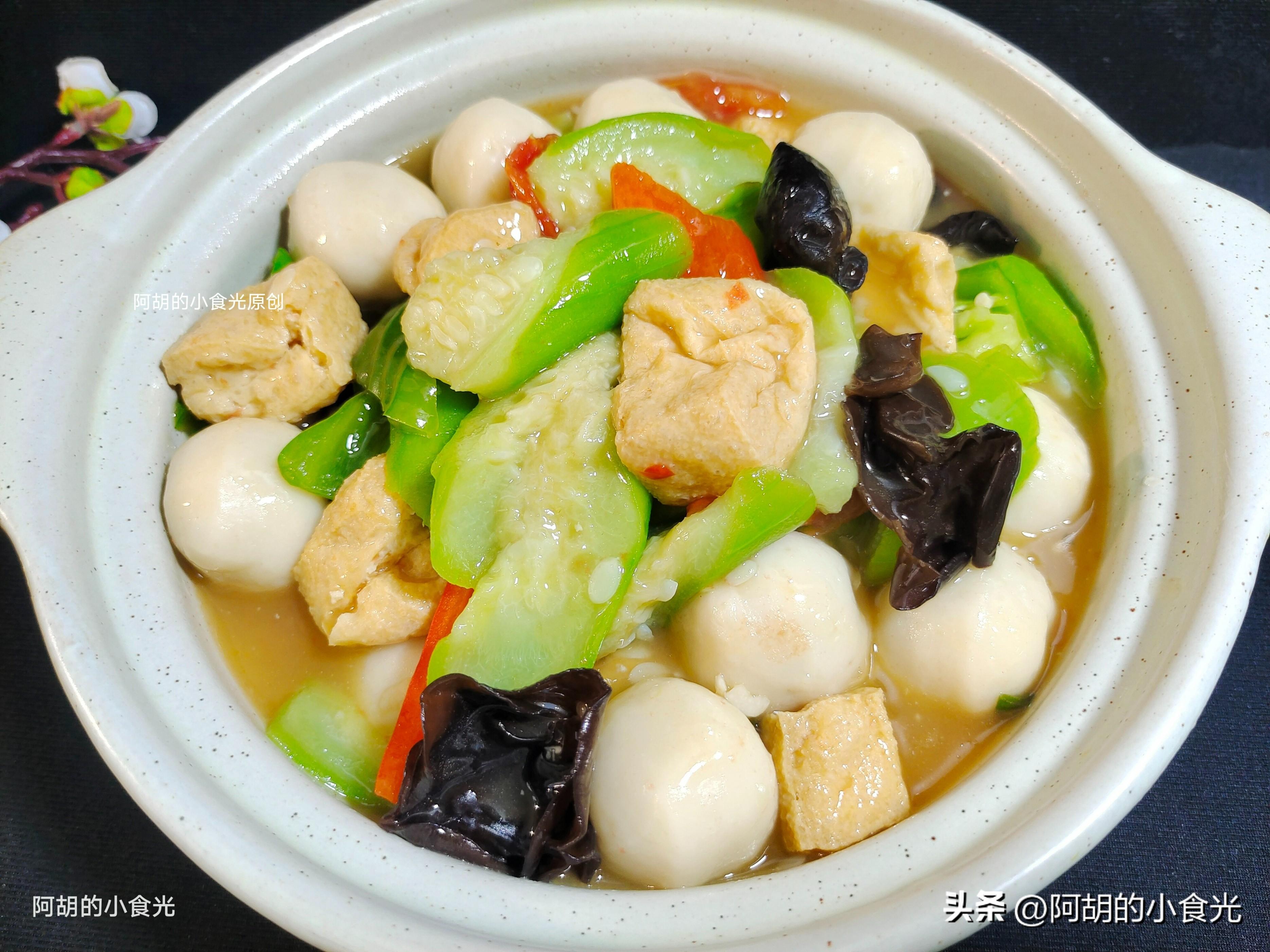 今天這道燉菜我管它叫做“雜燴燉菜”,食材比較多,有絲瓜、魚丸、木耳、油豆腐、西紅柿、青紅椒等,有蔬菜、有豆製品還有肉,味道鮮美不油膩,爽口開胃又舒服,天熱經常來一鍋恰到好處,別錯過。