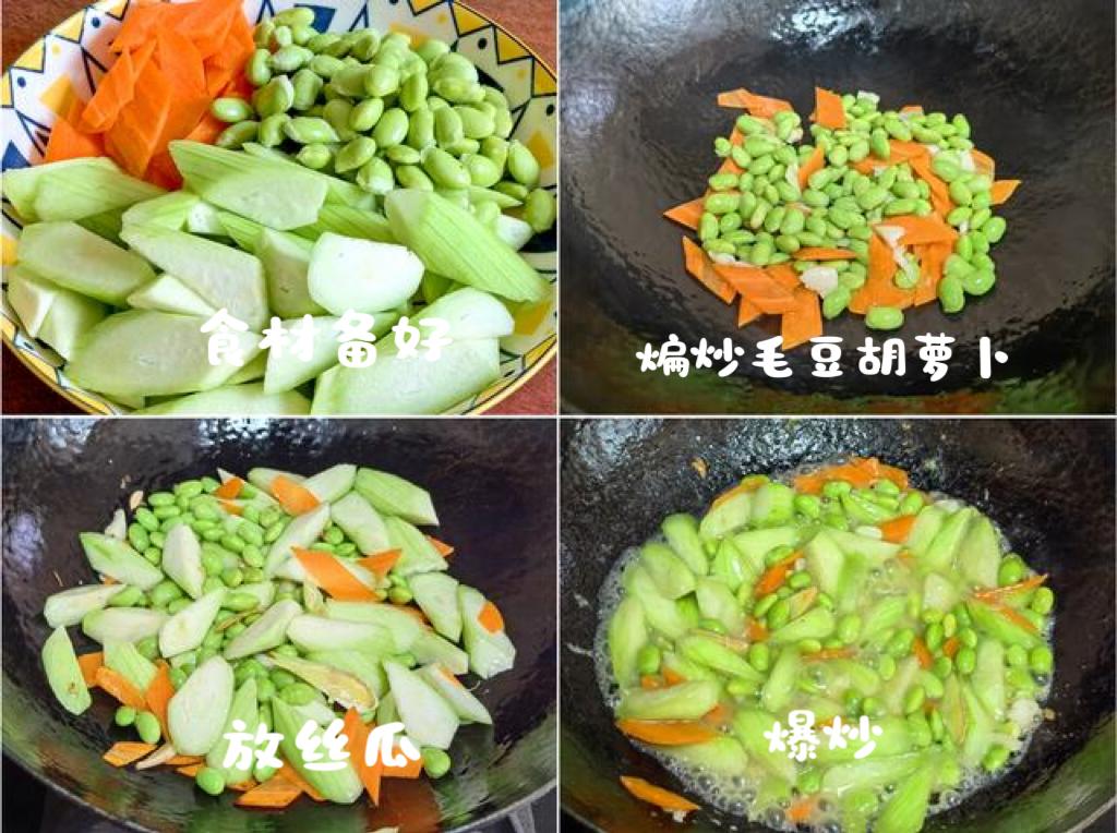 推薦食譜:絲瓜胡蘿蔔炒毛豆——清爽小炒,鮮掉眉毛!