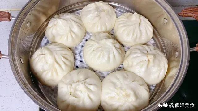 開包!挖一大勺餡兒放在皮中央,手指靈巧地捏褶子。說實話,我捏的褶子也就勉強算"十八個"吧,不太完美,但咱自己喫,皮薄餡大、不露餡兒纔是王道!包好一個,胖嘟嘟地放在墊了籠屜布的蒸鍋裏,蓋上蓋子讓它二次醒發。夏天溫度高,醒發特別快,大概十幾二十分鐘,包子明顯變大了一圈,胖乎乎軟綿綿的,用手指輕輕按一下側面,能慢慢回彈,這就發好了!