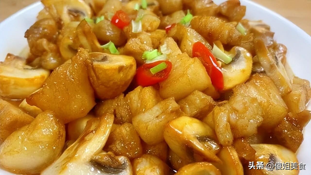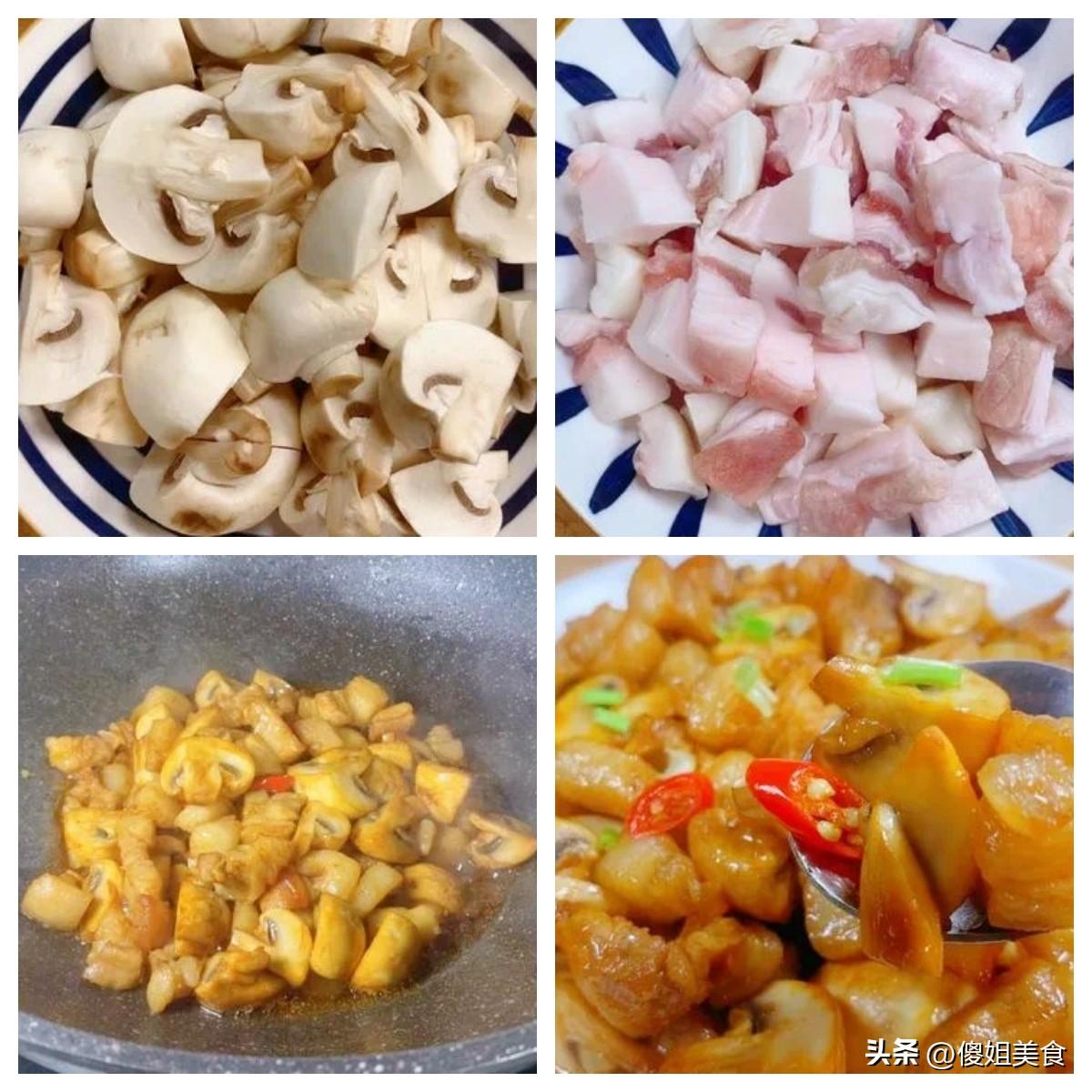 二、口蘑炒五花肉:鮮掉眉毛,湯汁拌飯絕了!