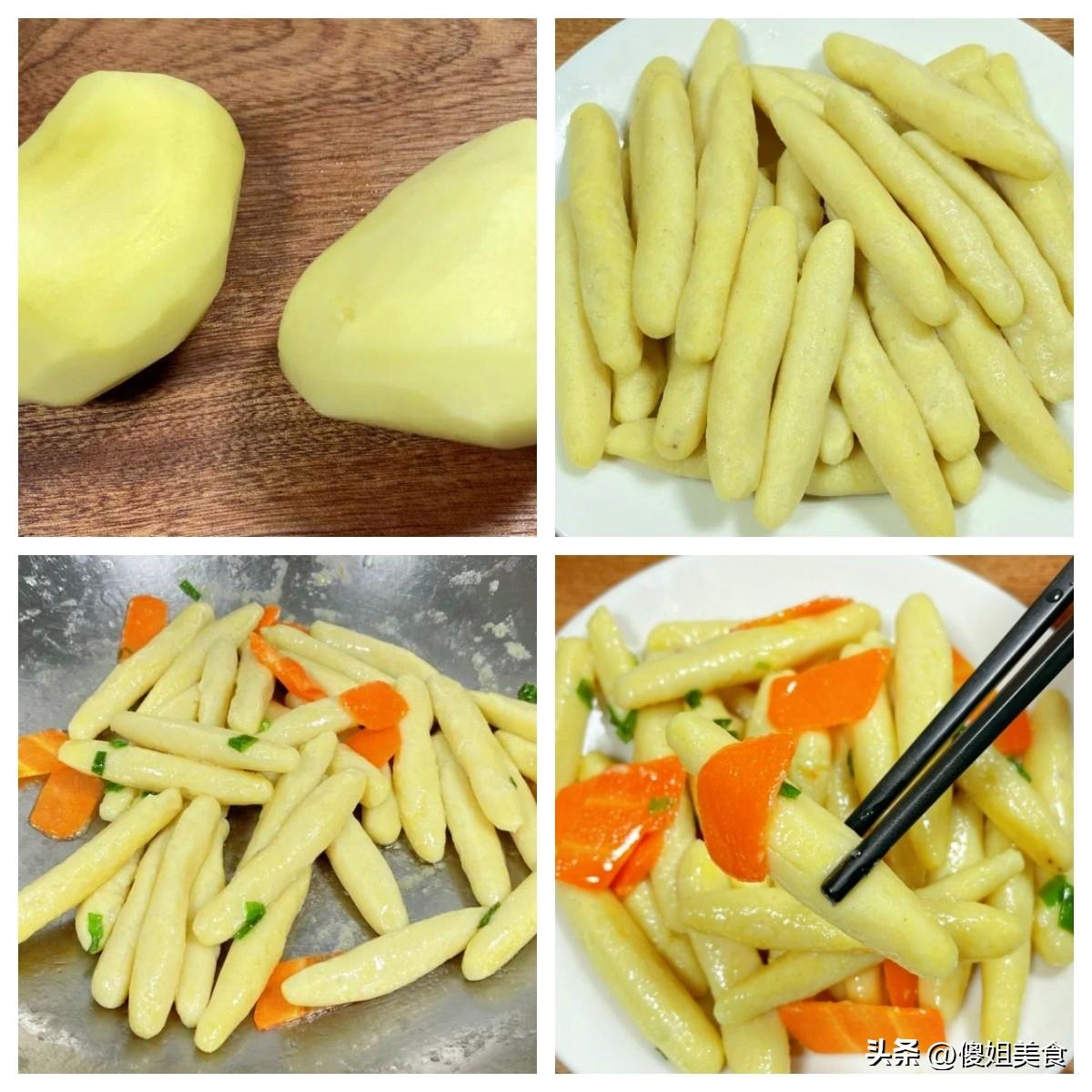 土豆真是個神奇寶貝!蒸熟碾成泥,軟軟糯糯的,加點大黃米麪和糯米麪揉一揉,立刻變得又Q又彈。趁娃午睡那點空檔,我就能搓出一大盤可愛的小魚條!