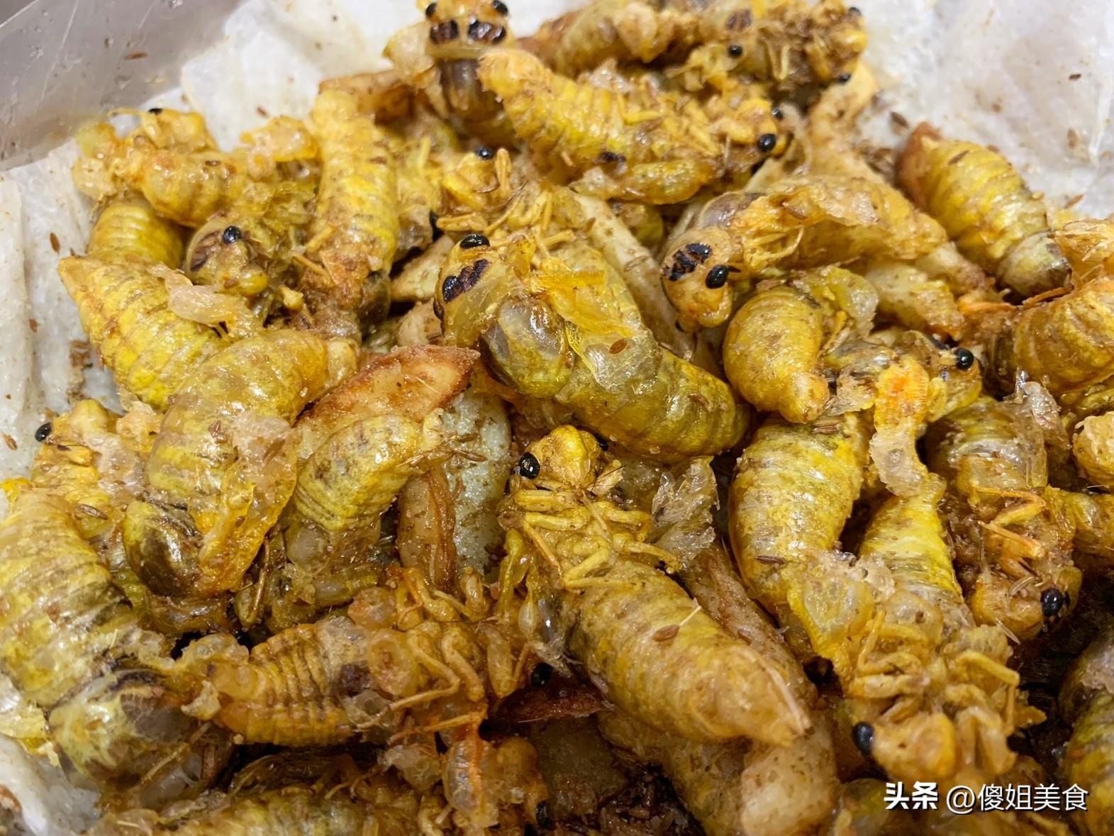 剛出鍋的乾煸金蟬,顧不上燙,捏起一隻扔進嘴裏,“咔嚓!” 一聲脆響直衝天靈蓋——那聲音,比薯片過癮一百倍!牙齒破開薄如蟬翼、焦香酥脆的外殼,裏面是緊實又帶着奇妙彈性的肉感。