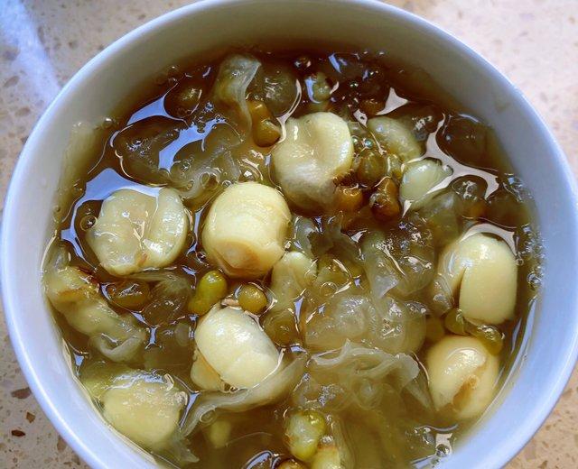 食材:綠豆,百合, 銀耳,蓮子,冰糖,枸杞