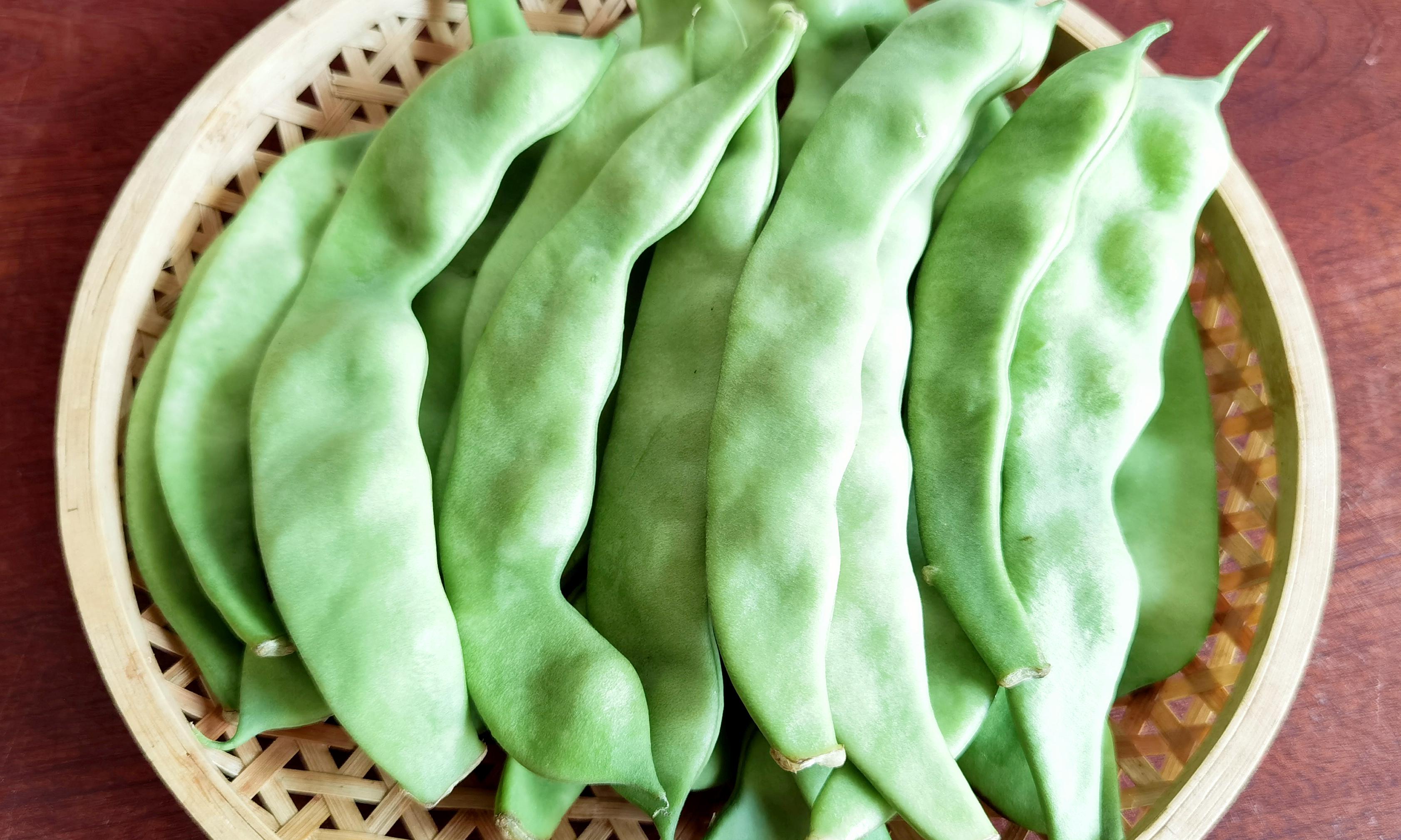 四季豆(也叫芸豆、刀豆),豆莢飽滿脆嫩。它富含膳食纖維和蛋白質,但一定記住要徹底做熟,安全第一!