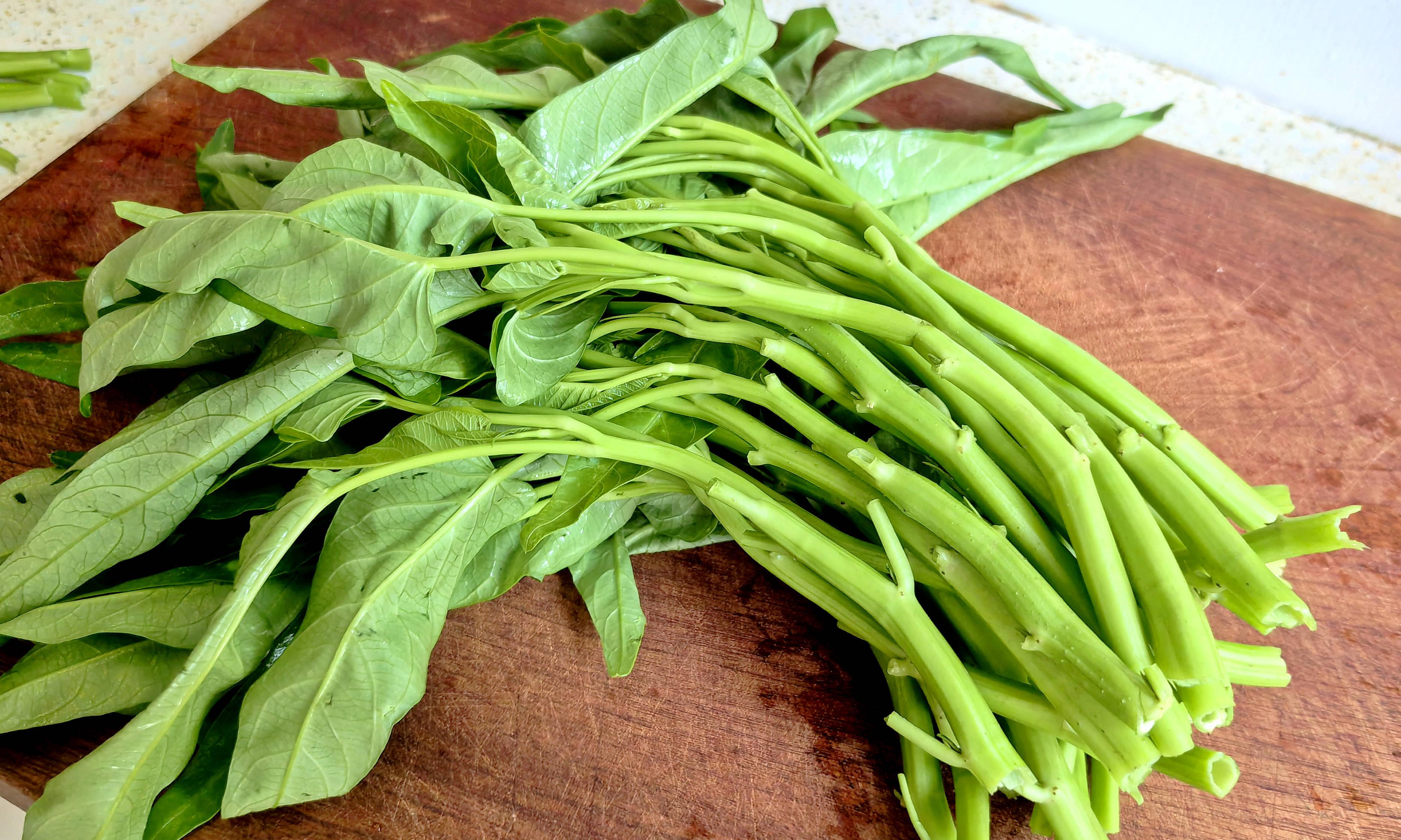 空心菜,也叫蕹菜,杆子脆生生、葉子嫩汪汪。它可是清熱解暑的一把好手,富含維生素和礦物質,尤其鉀含量高,特別適合出汗多的夏天。