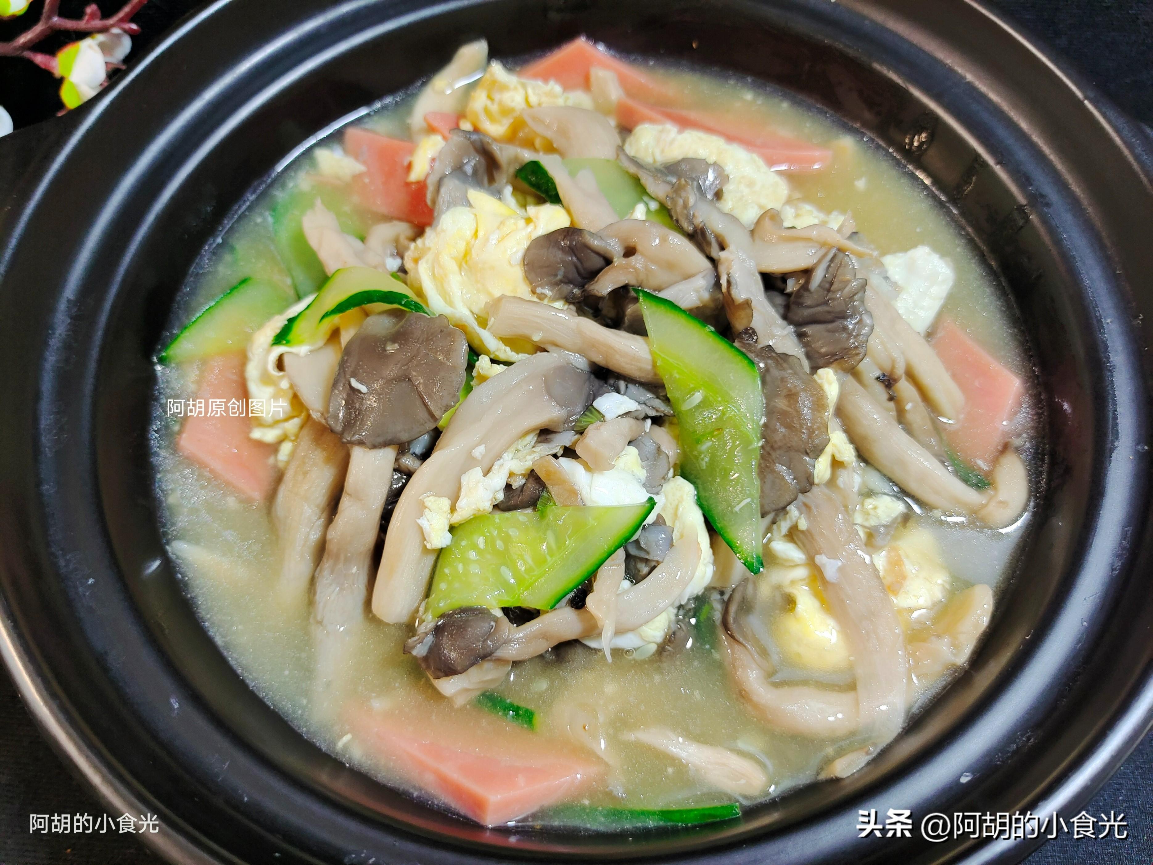 我是阿胡的小食光,一個喜歡研究把普通食材做出更多花樣美食的饕餮小食客!隨手搭配的一道湯菜,三四種食材一鍋出,有平菇、雞蛋、火腿和黃瓜,鮮美開胃,妥妥的下飯好菜。如果你喜歡今天這道平菇燴三鮮的做法,那就不妨先關注我,再爲此文點個贊和“小紅心”,明天的內容依舊很精彩,感謝閱讀,明天見!