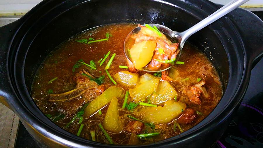 4.大約燉40~50分鐘,燉至排骨肉質軟爛後,再將冬瓜下入,繼續燉15分鐘左右,燉到冬瓜變得透明,輕輕一戳就軟爛時關火。