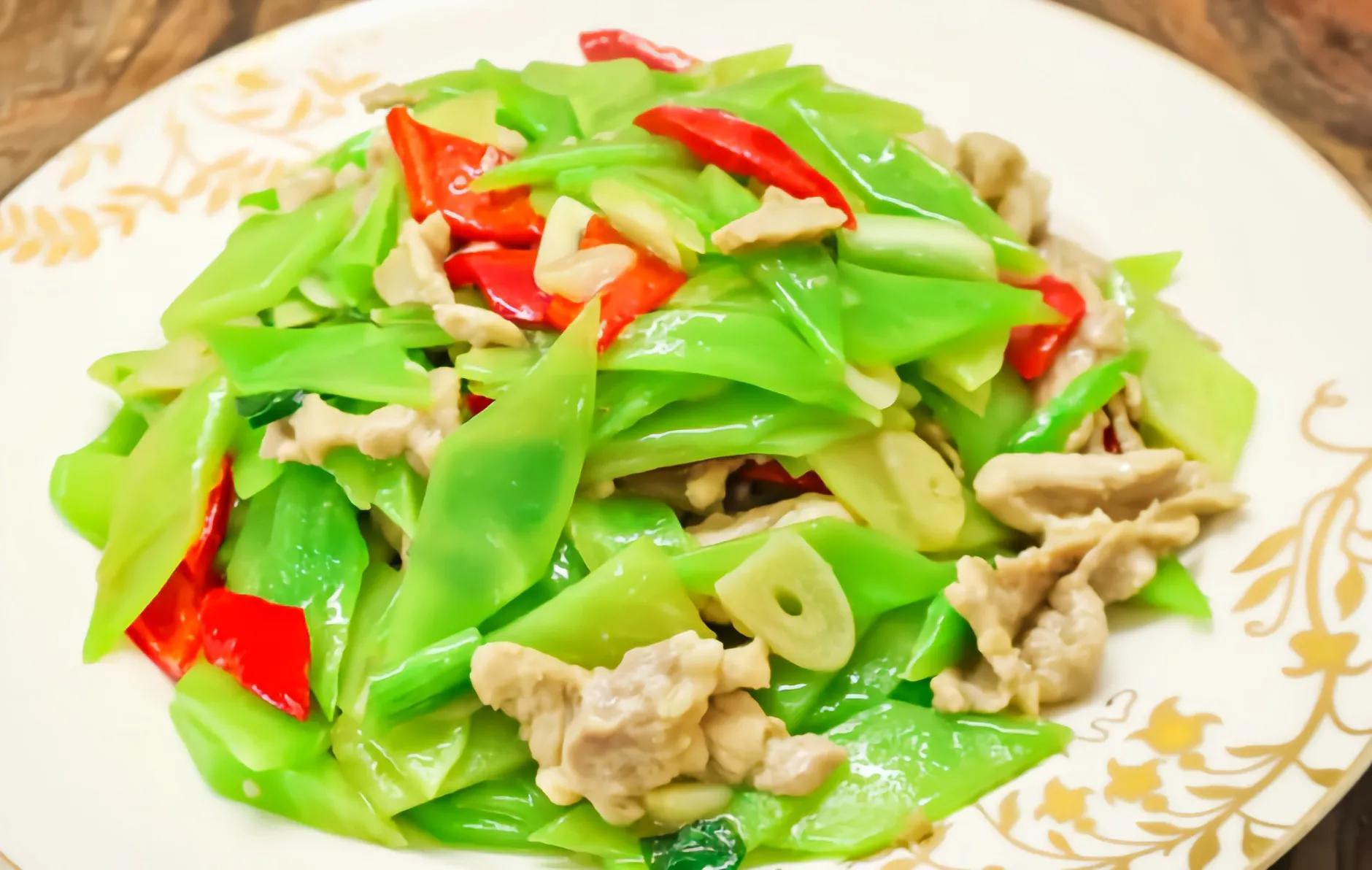 食材:萵筍、瘦肉、紅辣椒、大蒜、小蔥、生薑
