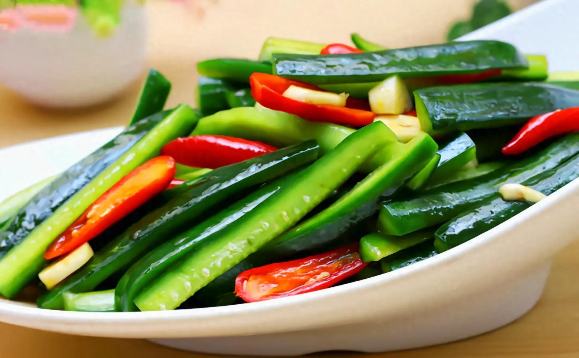 食材:黃瓜、小米椒、大蒜、白糖、香醋