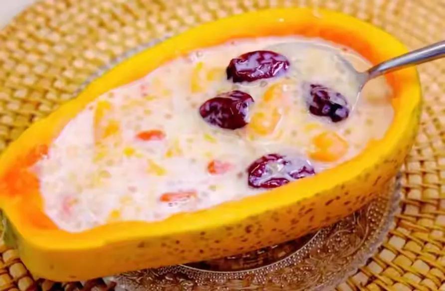 食材:銀耳、木瓜、西米、枸杞、紅棗、牛奶