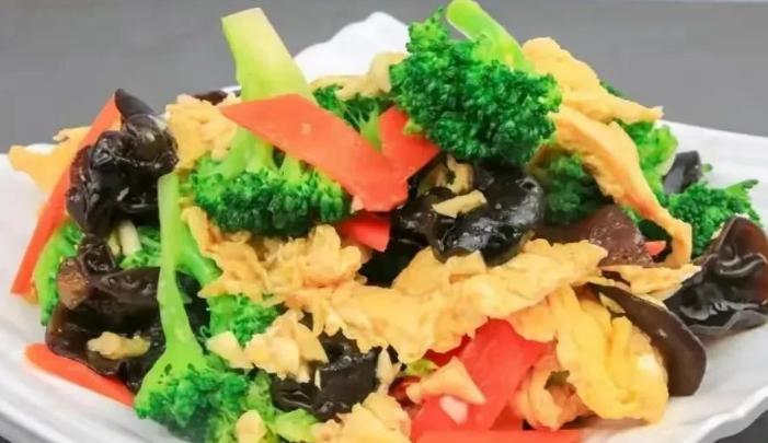 食材:西蘭花、胡蘿蔔、大蒜、雞蛋、黑木耳、白糖