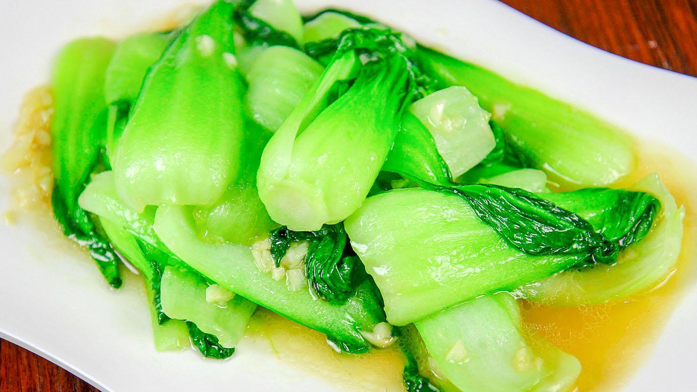 3鍋裏放油,爆香蔥薑蒜,倒進上海青,大火翻炒