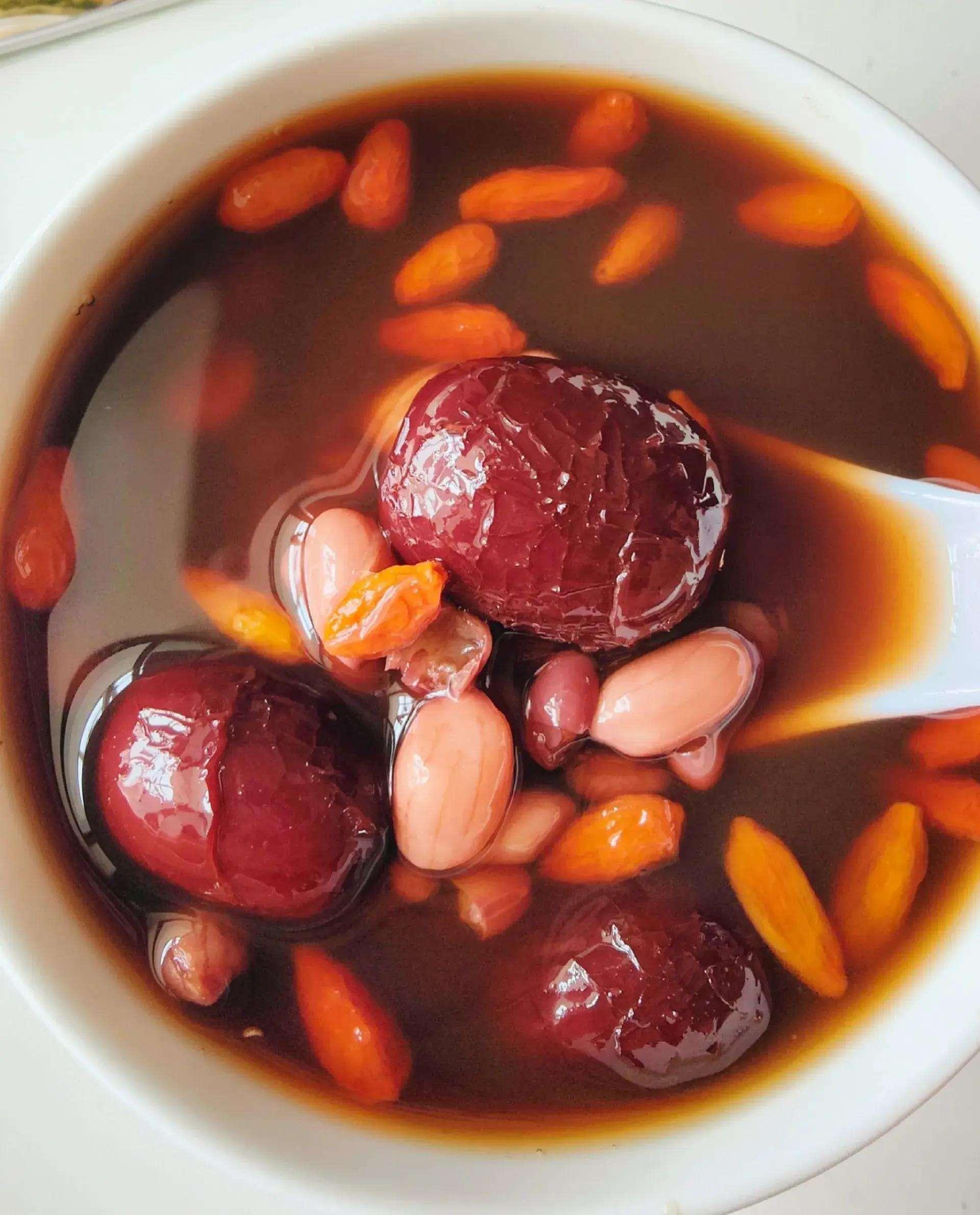 食材:紅豆,花生,紅棗, 紅糖, 枸杞