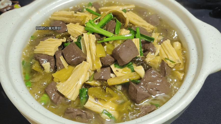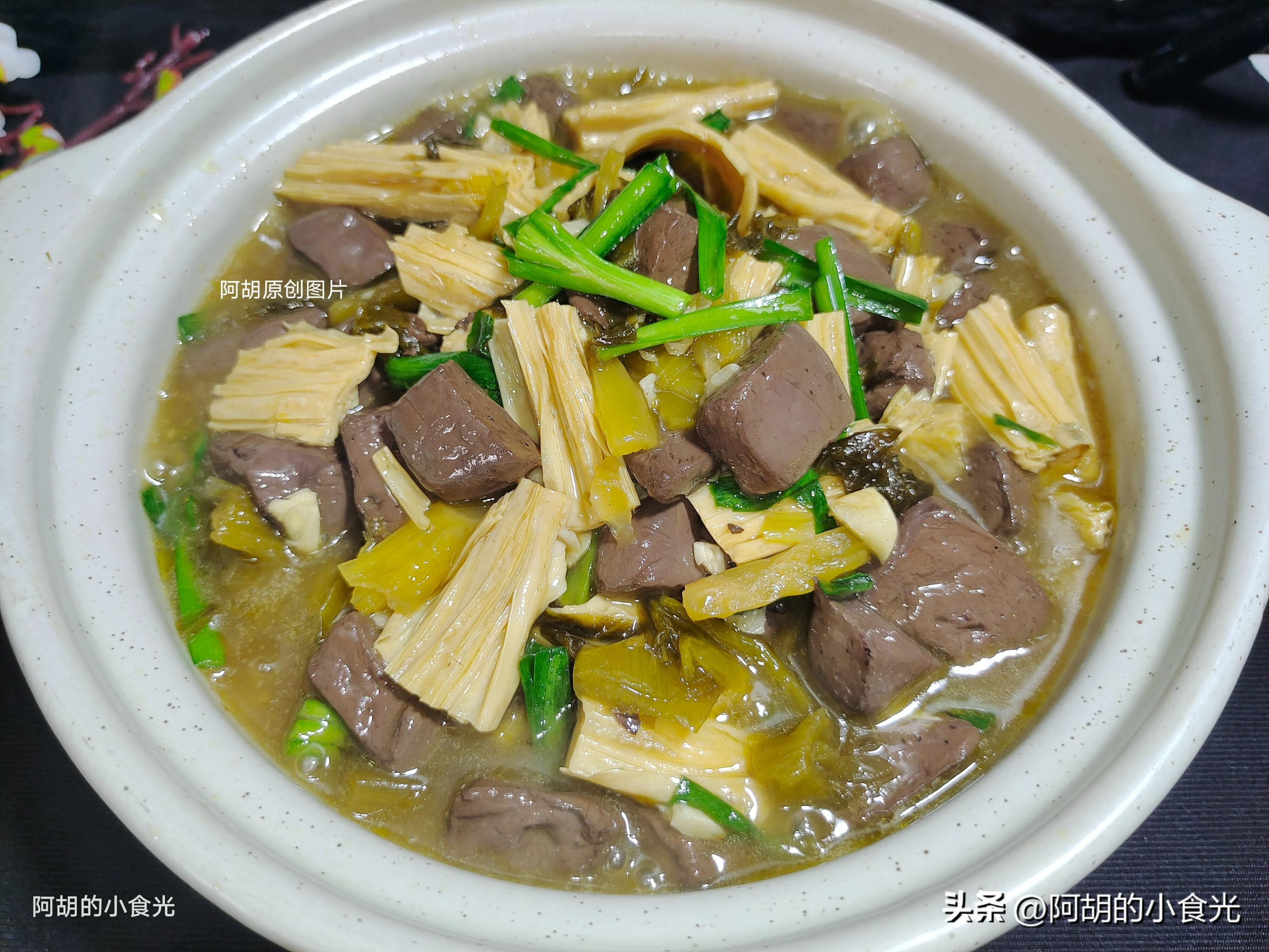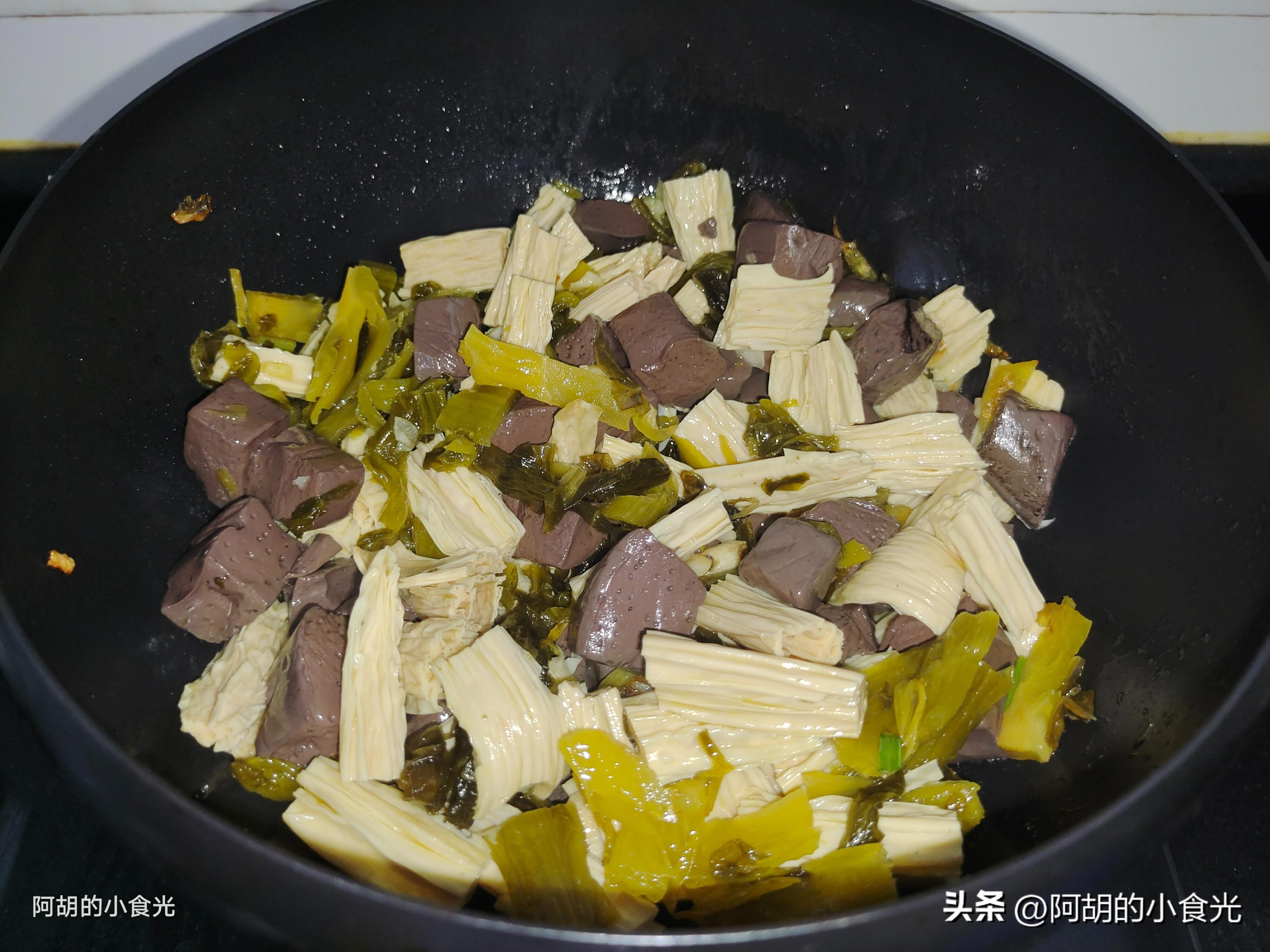 今天與酸菜搭配的食材還有豬血和腐竹,就這簡單的3種食材,有植物蛋白也有動物蛋白,營養豐富,就這樣簡單的炒一炒再燒一燒,妥妥的一道下飯好菜,值得試一試。