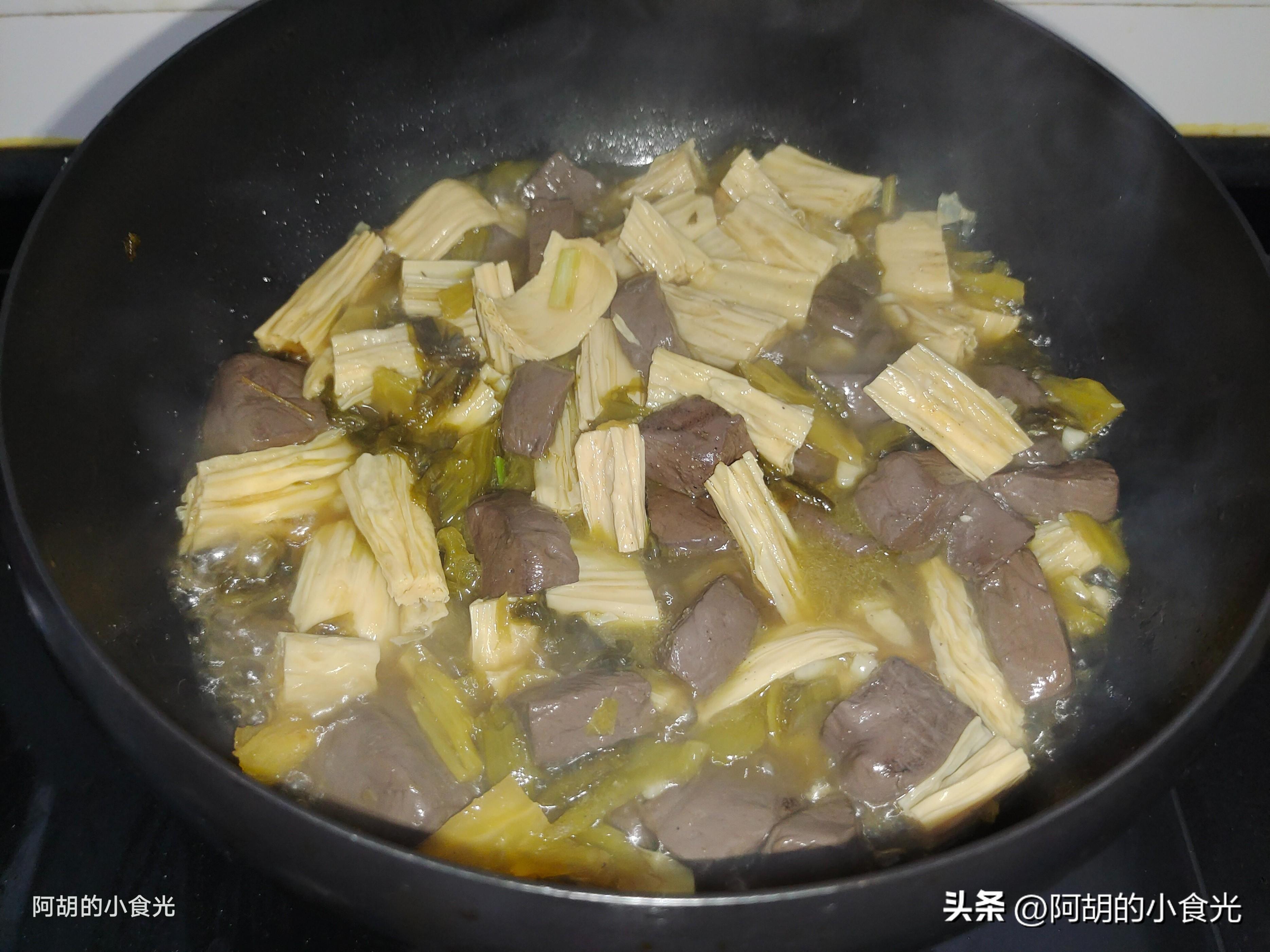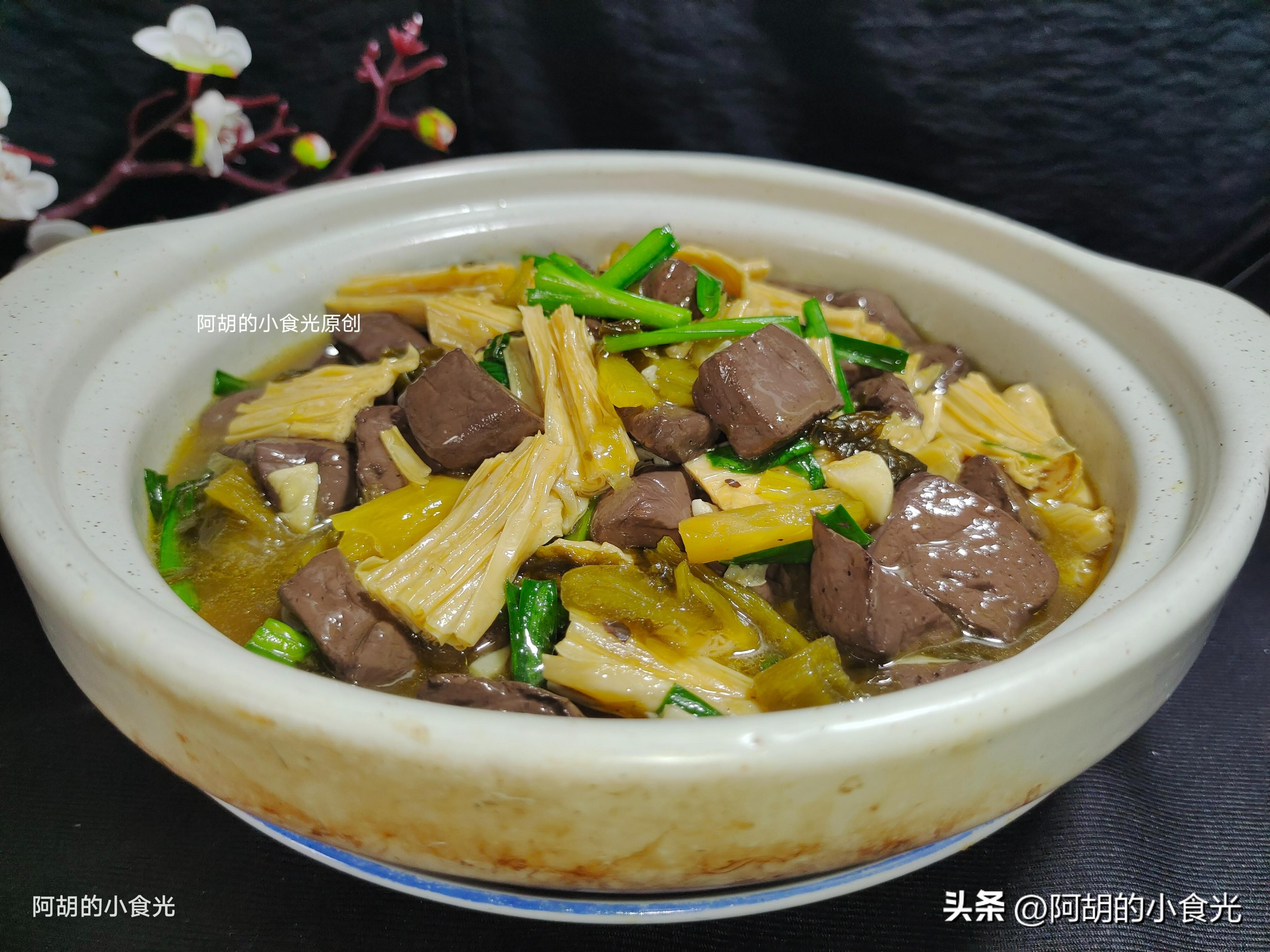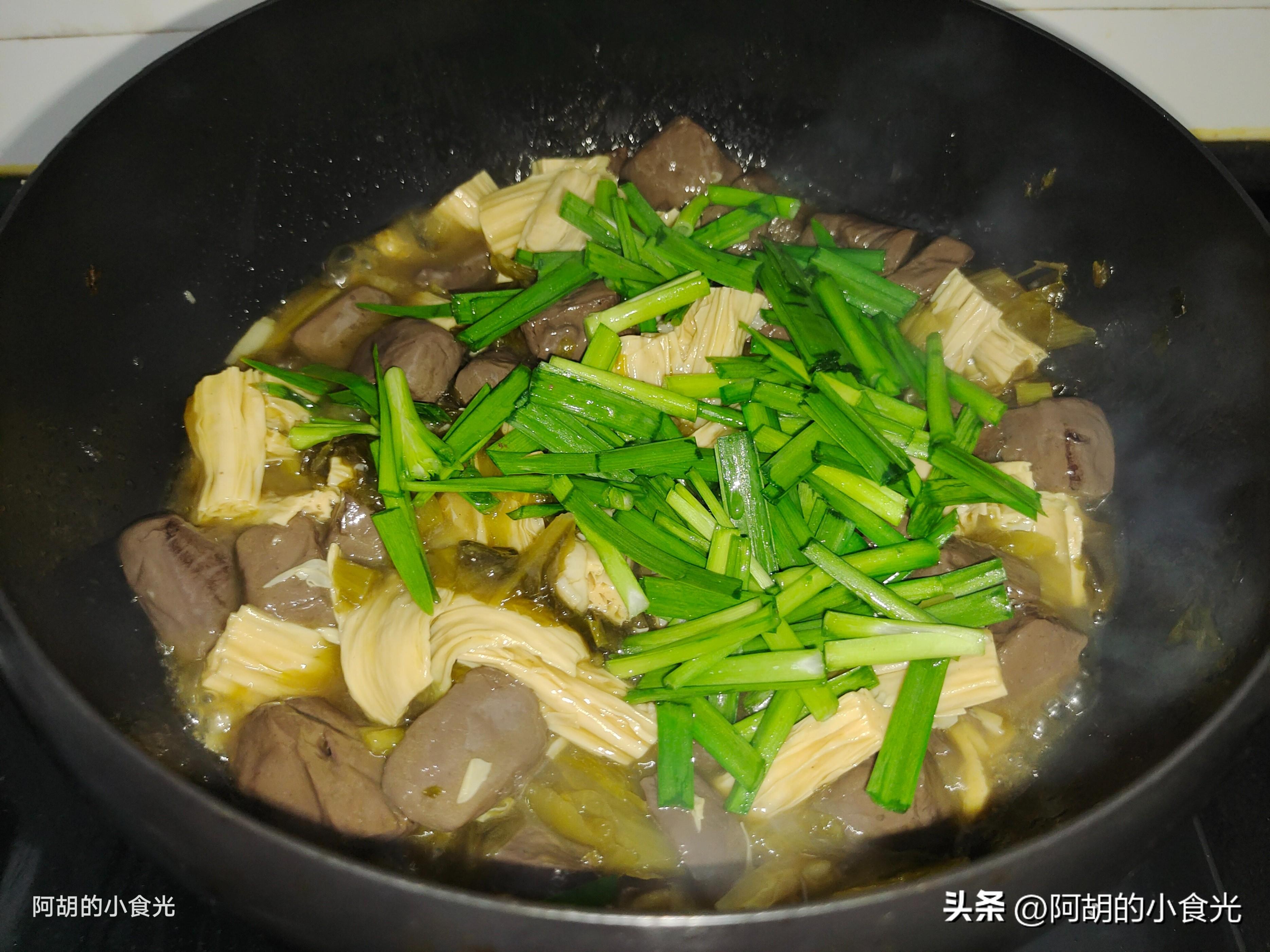 今天與酸菜搭配的食材還有豬血和腐竹,就這簡單的3種食材,有植物蛋白也有動物蛋白,營養豐富,就這樣簡單的炒一炒再燒一燒,妥妥的一道下飯好菜,值得試一試。