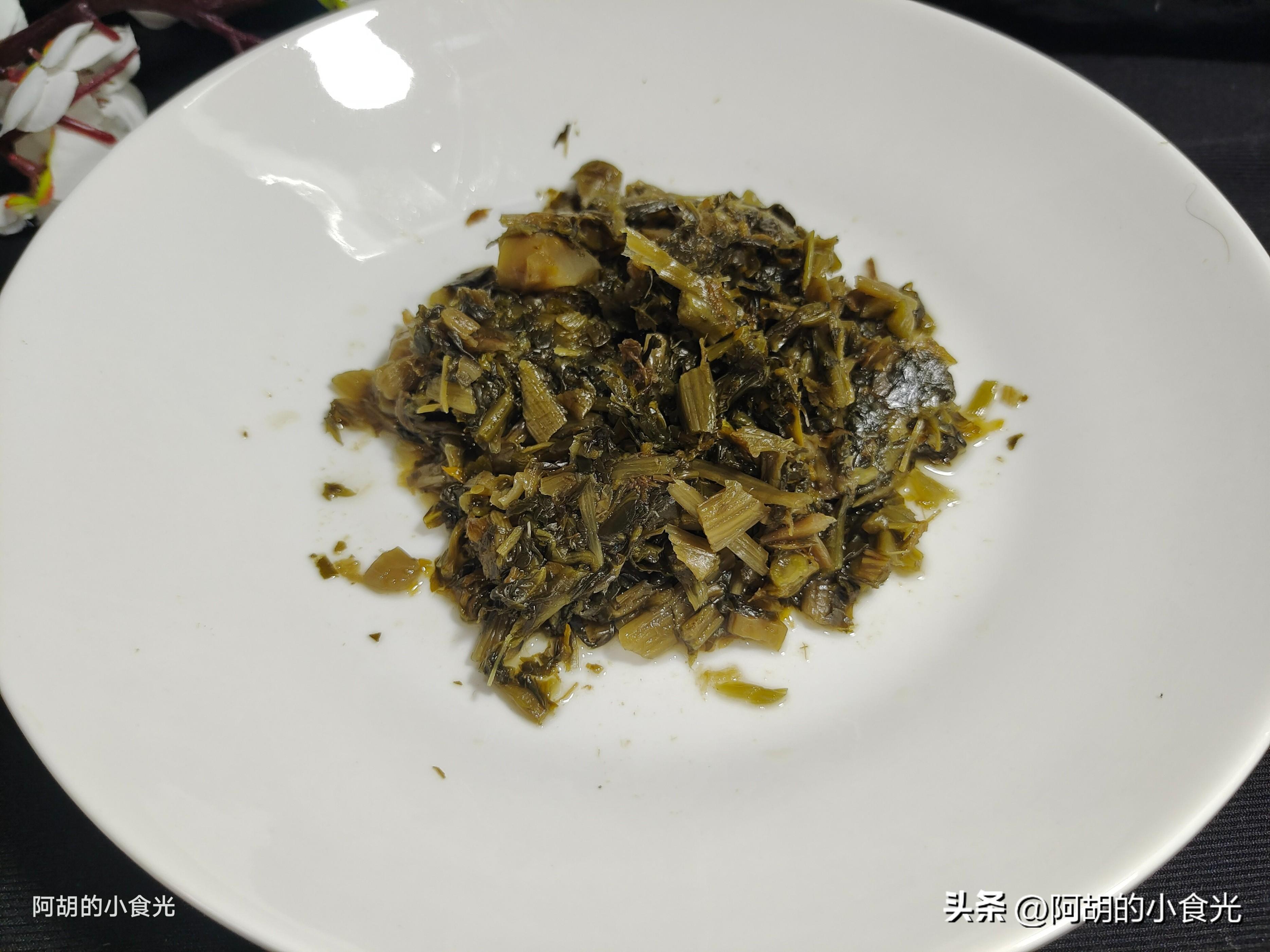 第三步:我今天所用的是袋裝的雪菜,拆開後就是切碎的,不用清洗直接可用。如果是散裝的醃製雪菜,則最好用清水洗掉一些鹽分,擠幹水分後再切碎備用。