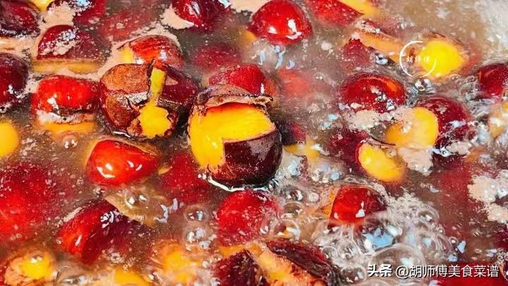 第一步:將板栗切成十字花刀後放入鍋中,然後加入適量熱水,將板栗煮10分鐘後撈出,然後將板栗的外殼剝的扔掉。