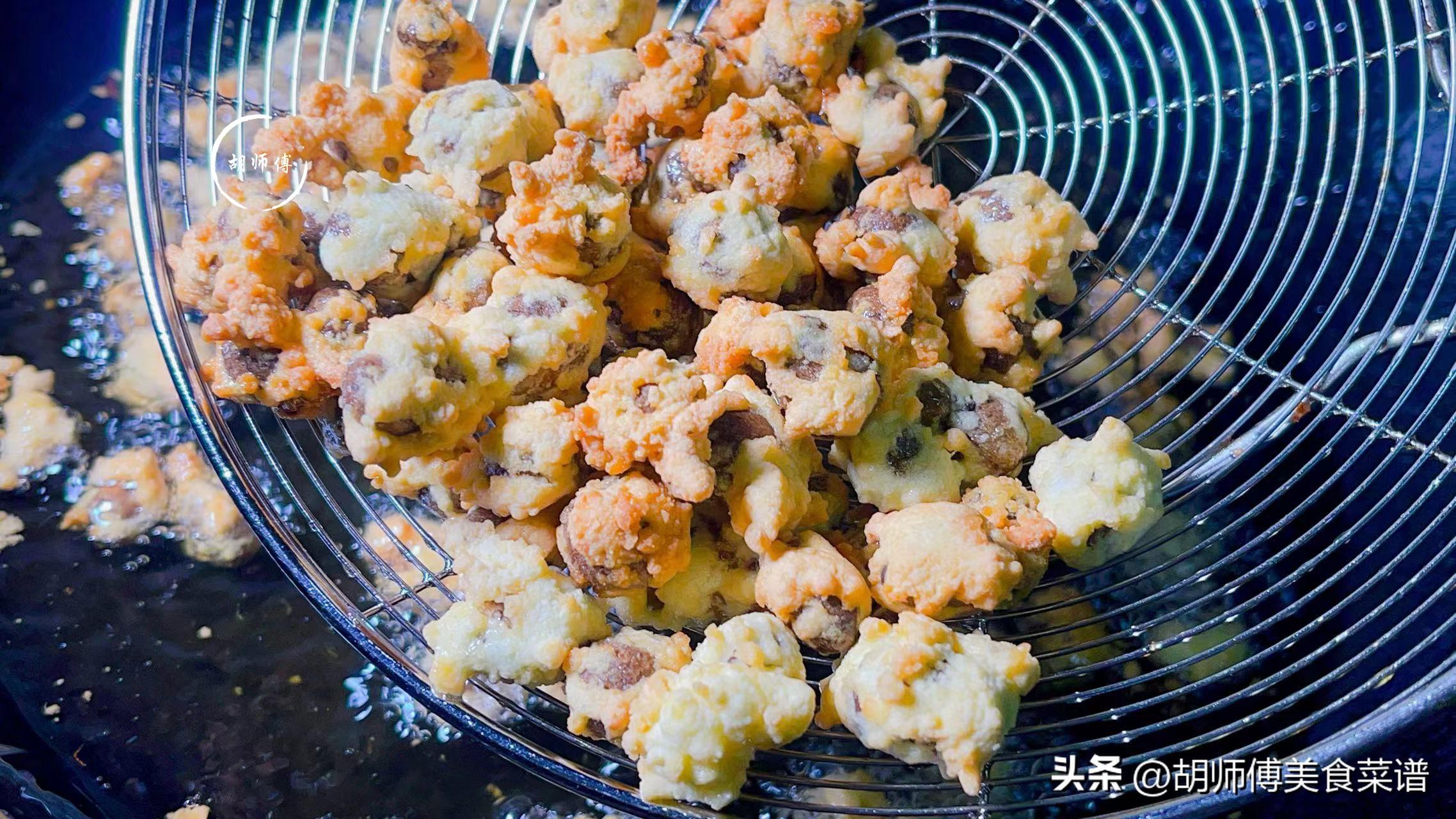 第二步:等山藥豆完全冷卻後,將雞蛋、澱粉、麪粉、食鹽全部放入盆中,將它們攪拌均勻即,然後鍋中放入適量油,等油燒熱後,把山藥豆放入鍋中,大火將山藥豆表面炸成金黃色即可撈出。
