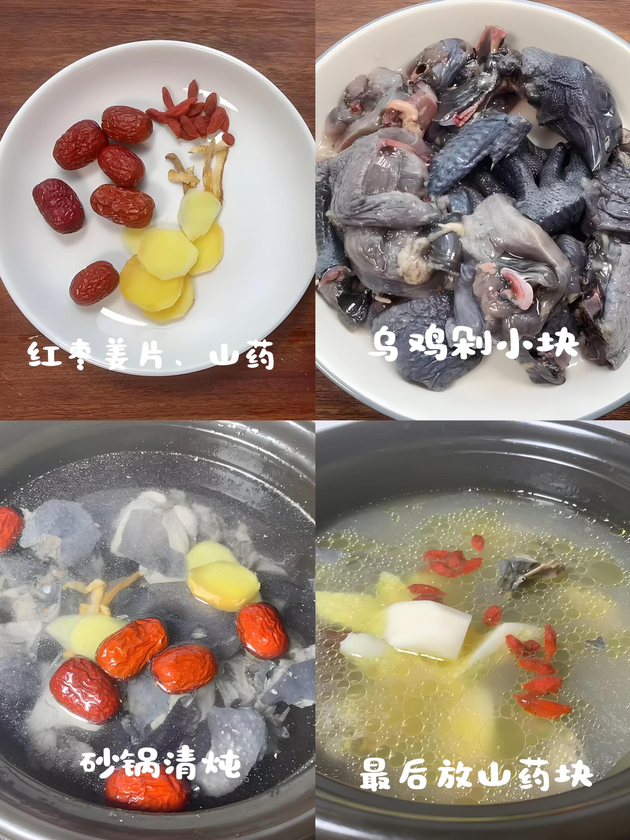 小貼士:烏雞焯水後用溫水沖洗,肉質會更嫩。山藥一定要在快下鍋前再處理,不然會氧化變黑。