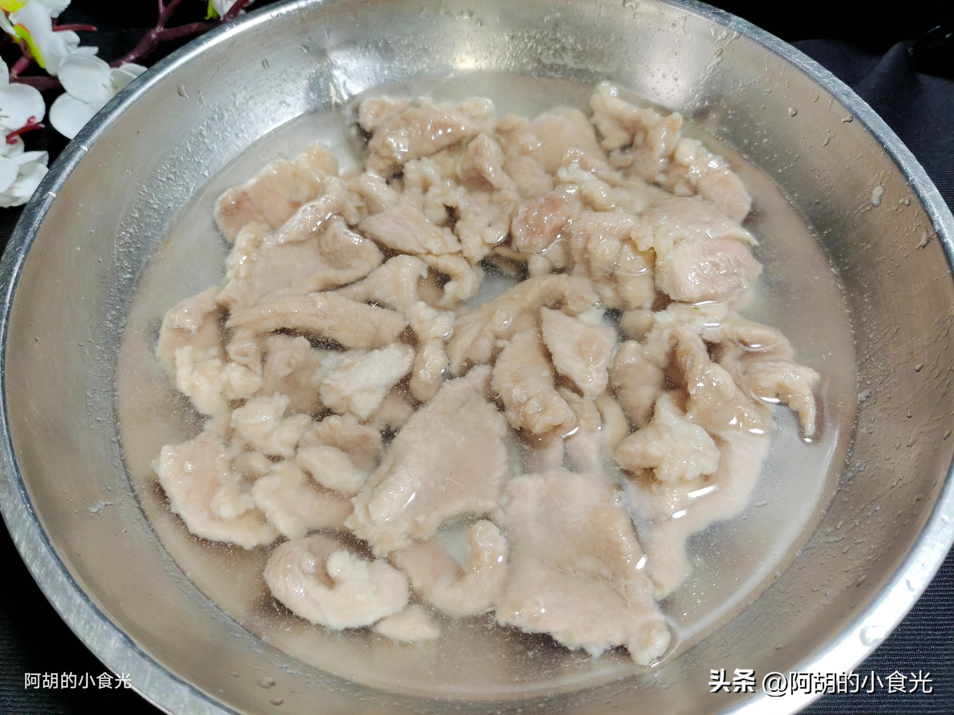 第三步:盛出的肉片不要胡亂放置,最好將其丟入涼水中至其完全冷卻,這樣肉片外表的粉漿凝固的更加牢靠,後面煮的時候也不容易脫漿。