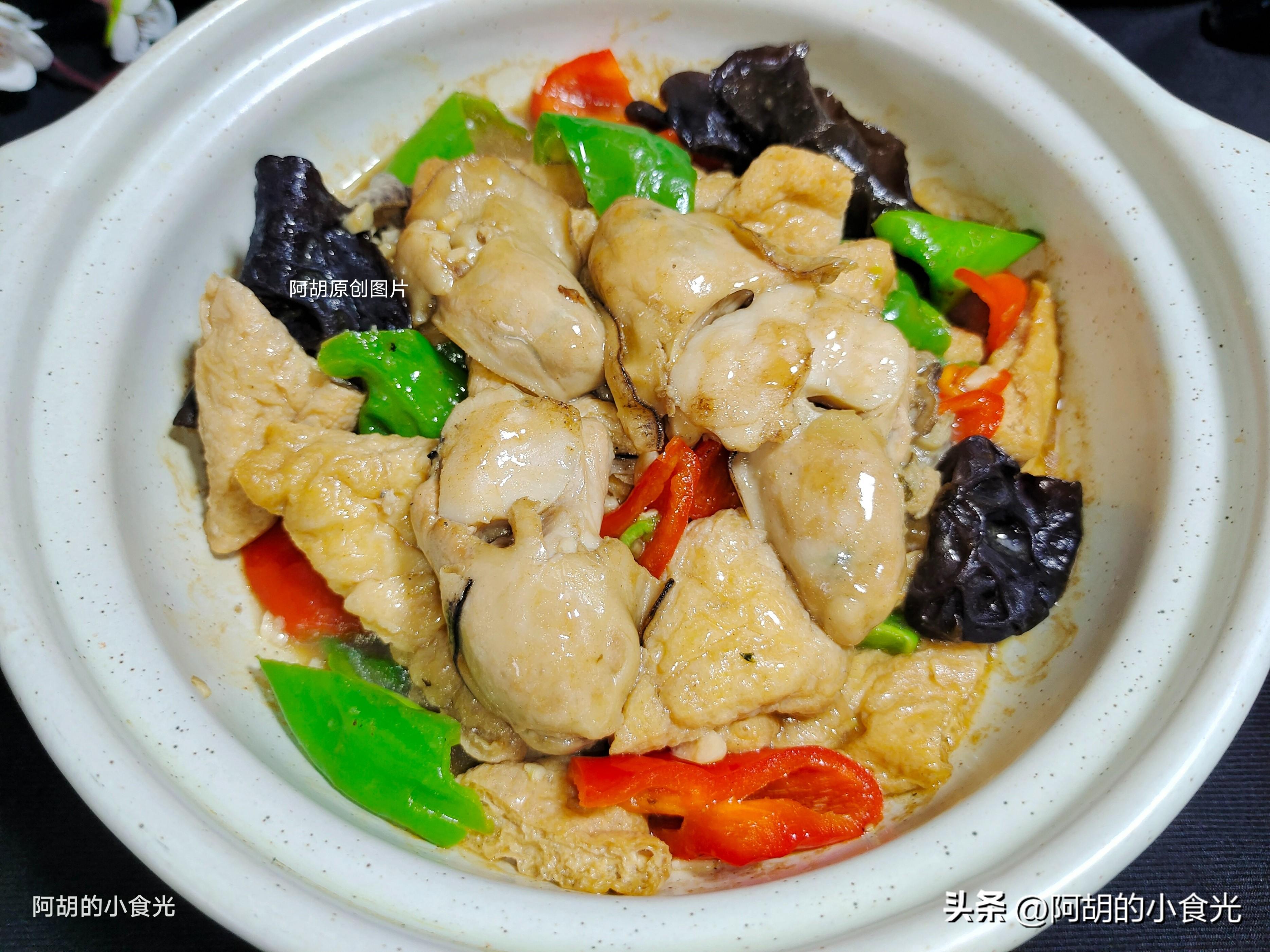 今天這道菜的主要食材有蠔肉、油豆腐和木耳,油豆腐是豆製品、蠔肉是海鮮、木耳又是菌類,再搭配青紅椒來提味增色,油豆腐吸收了蠔肉湯汁的滋味,鮮嫩又多汁,營養豐富開胃又下飯,值得各位試一試。