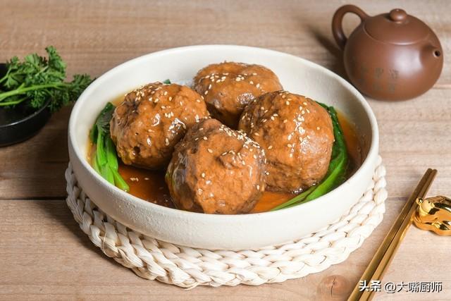 裝盤擺盤:將燉煮好的丸子撈出放在盤子裏,鍋中湯汁加水澱粉勾芡,澆在丸子上。周圍可以擺上焯過水的油菜作爲裝飾。