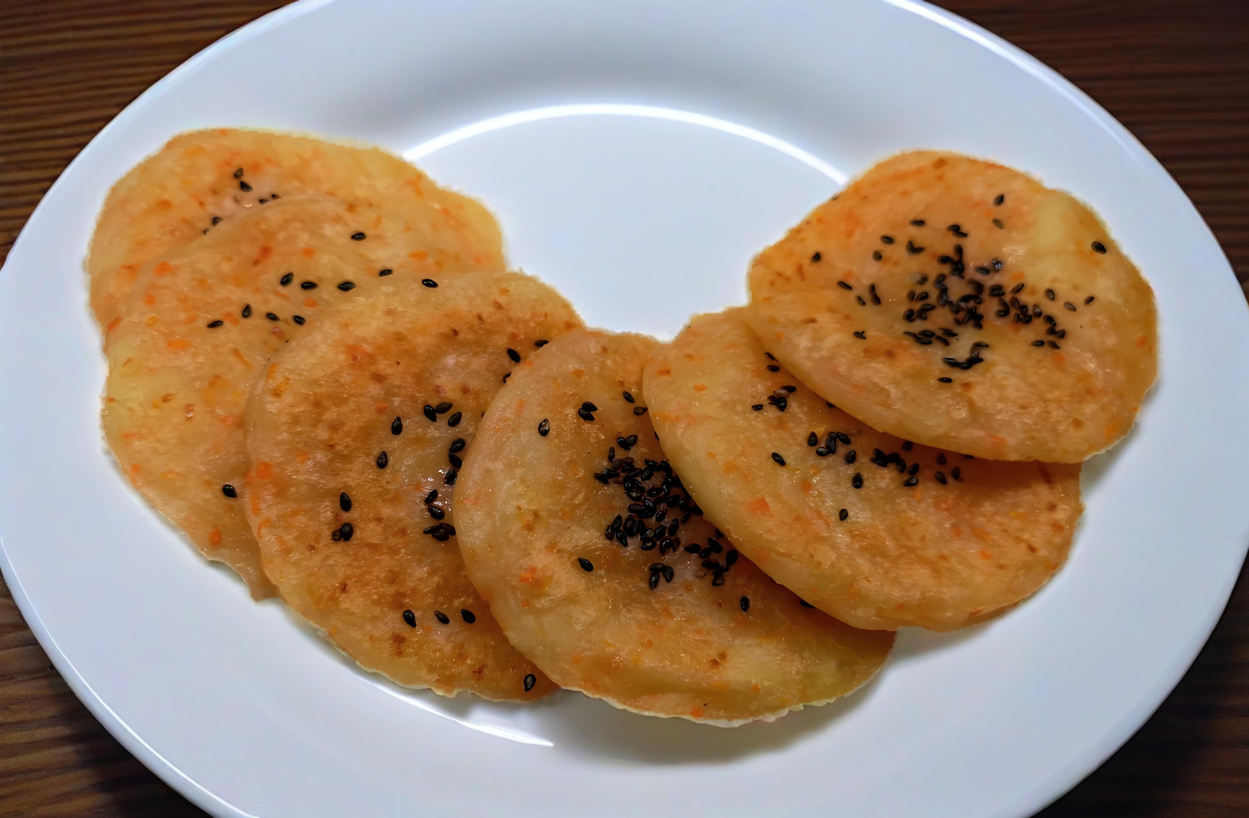 3. 平底鍋刷油,舀一勺麪糊攤成小圓餅,小火煎至兩面金黃即可,外酥裏嫩,口感層次特別豐富!