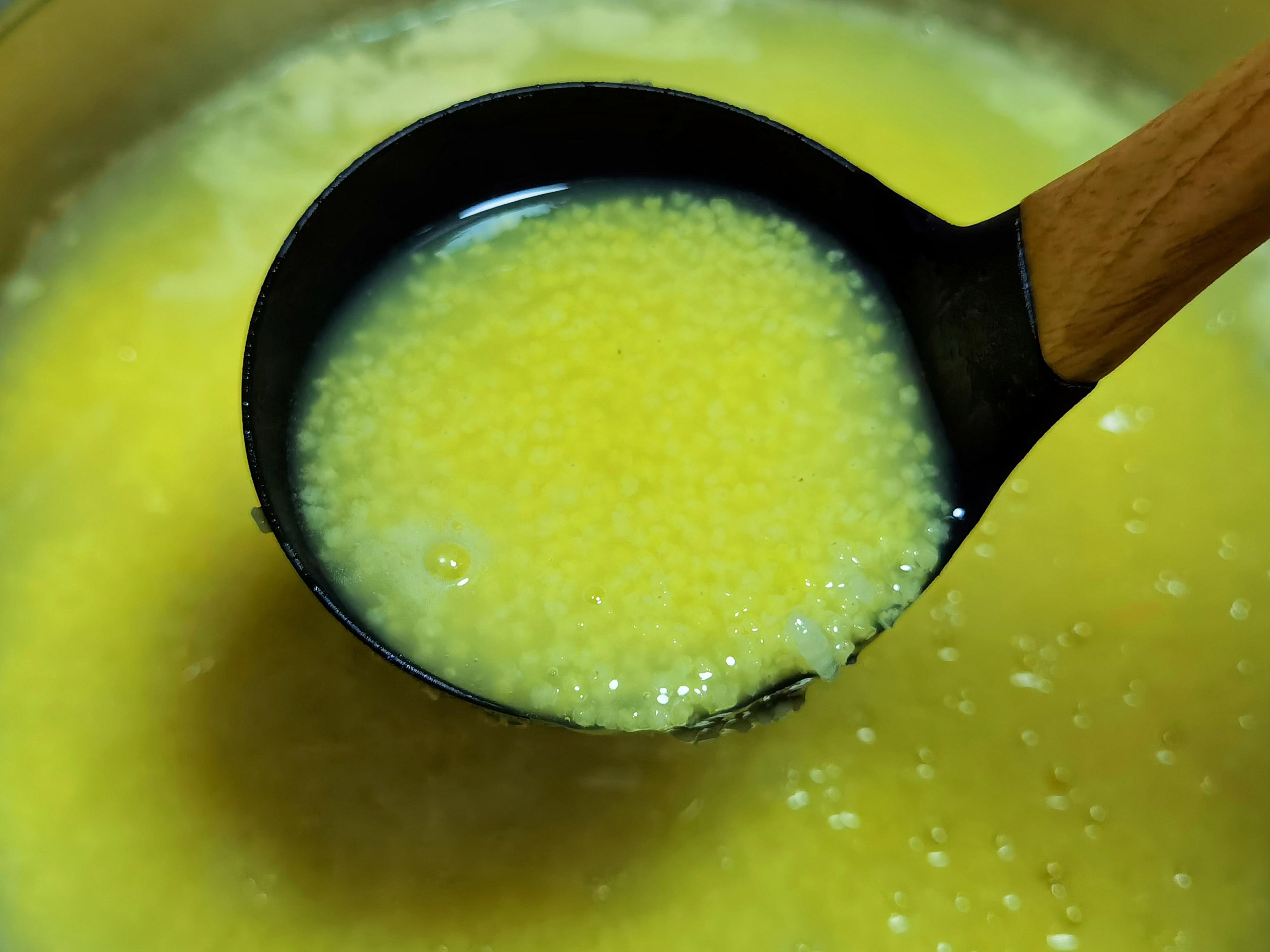 小米雖然個頭小,但能量巨大,是公認的養胃佳品。它色黃入脾,能有效改善脾胃虛弱、消化不良的問題。秋天用小米煮粥,上面浮着的那一層“米油”,滋陰功效極佳,對緩解秋燥引起的口乾非常有效。