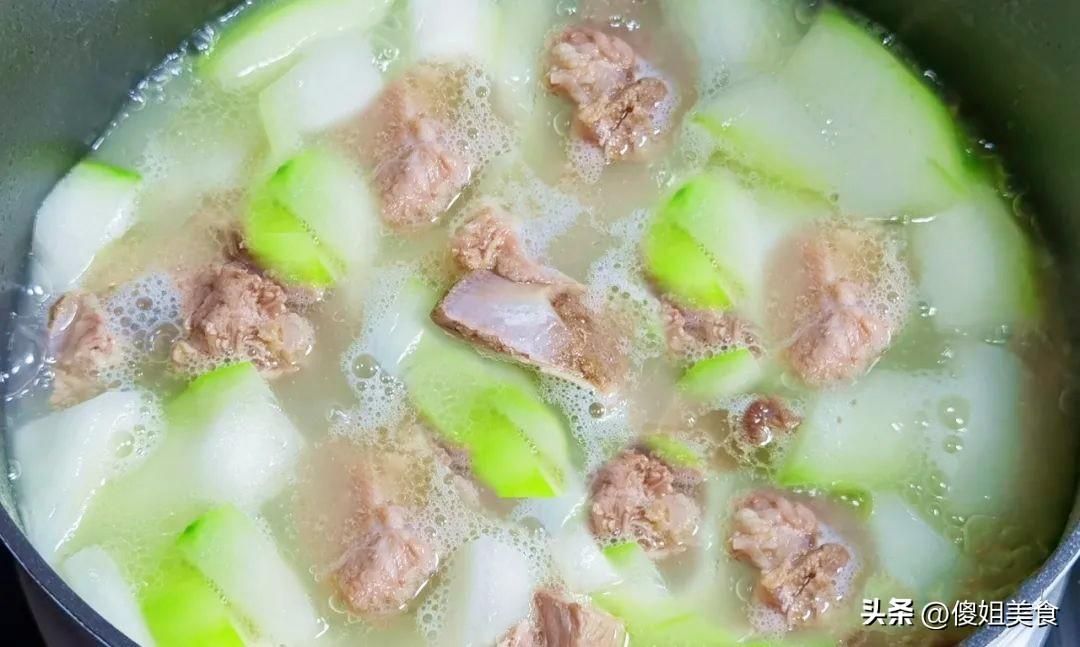 排骨燉得差不多了,就把冬瓜放進去,繼續燉20分鐘左右,看到冬瓜變得有些透明,用筷子一戳就穿,就可以了。