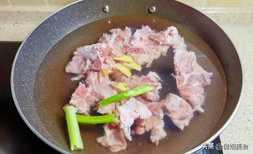 第一步:將排骨切成4釐米左右的小段,用清水浸泡20分鐘,泡出血水。這裏有個小竅門:可以在水裏加一勺鹽,這樣能更好地去除雜質。洗乾淨的排骨冷水下鍋,加入薑片、1勺料酒,開中火慢慢加熱,千萬不要用熱水焯排骨,否則肉質會變柴,水開後繼續煮3分鐘,期間用勺子仔細撇去浮沫。