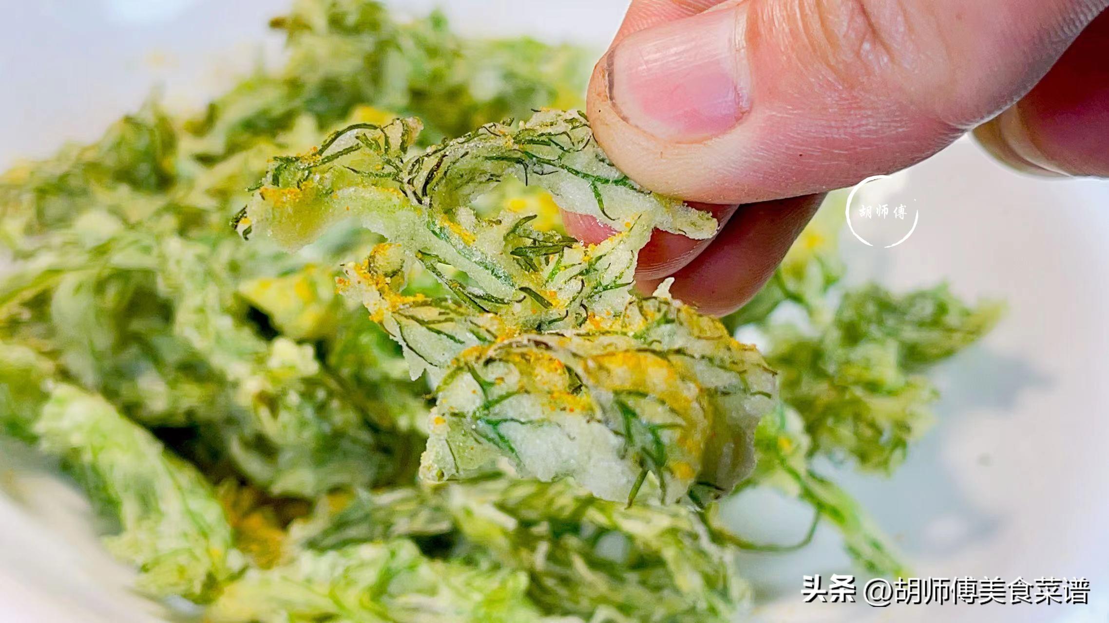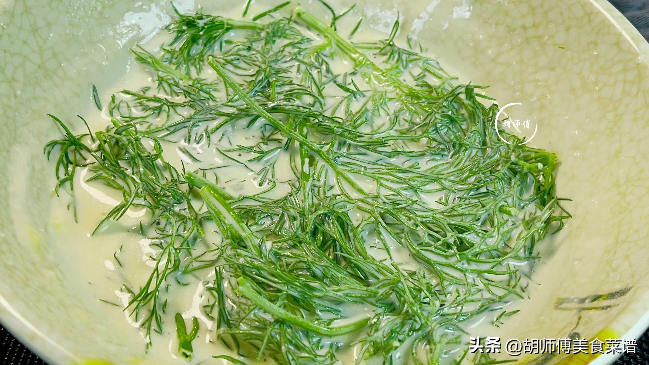 【食材準備】:茴香菜200克、澱粉100克、椒鹽、食用油適量。