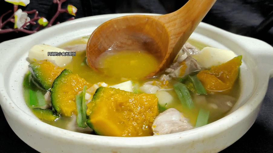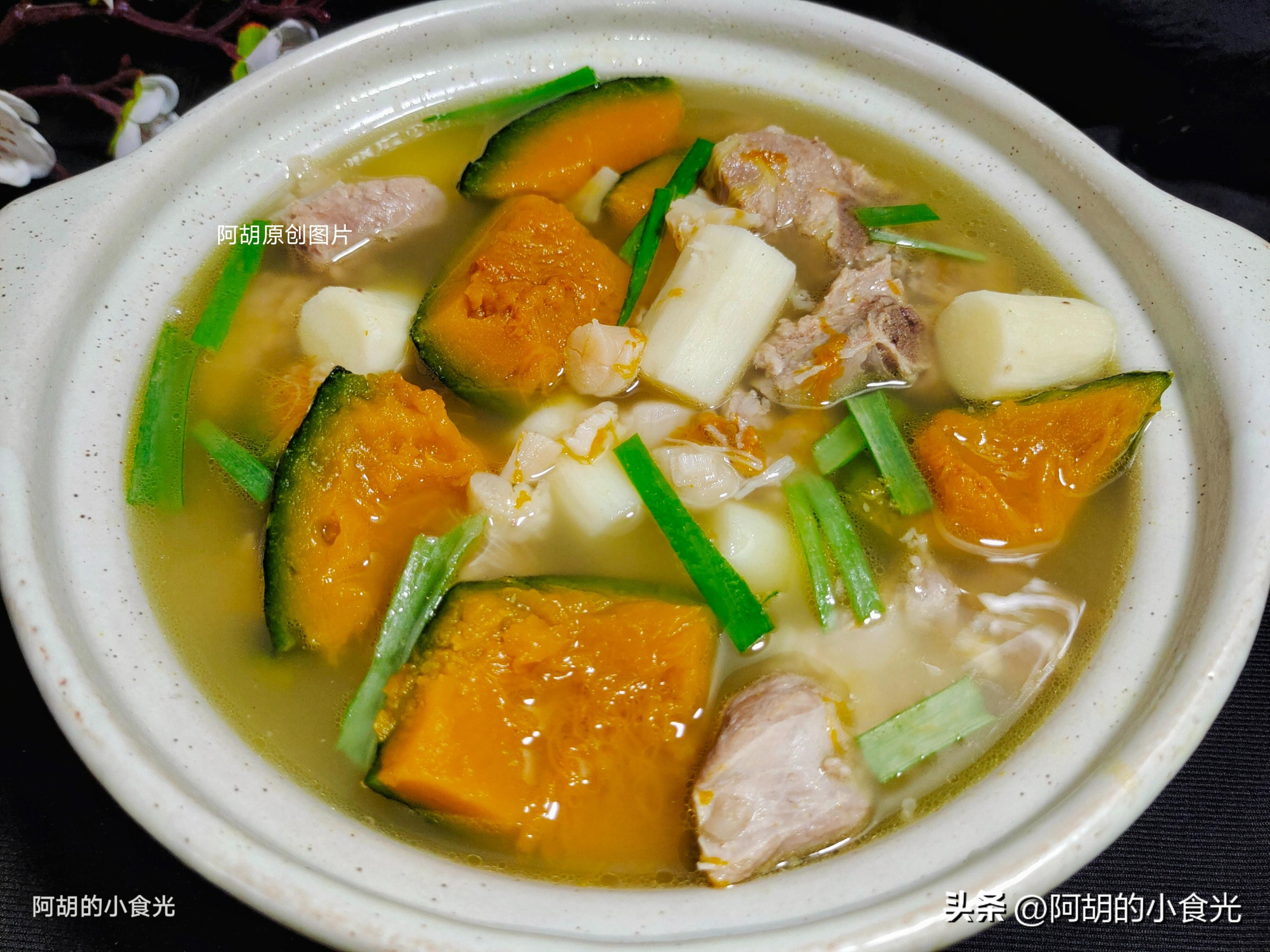 這道湯除了南瓜還有山藥、排骨和乾貝,乾貝還能賦予一份來自海鮮的鮮甜之味,就這4樣簡單的燉一燉,葷素搭配,鮮爽可口,營養豐富,做法簡單值得試一試。