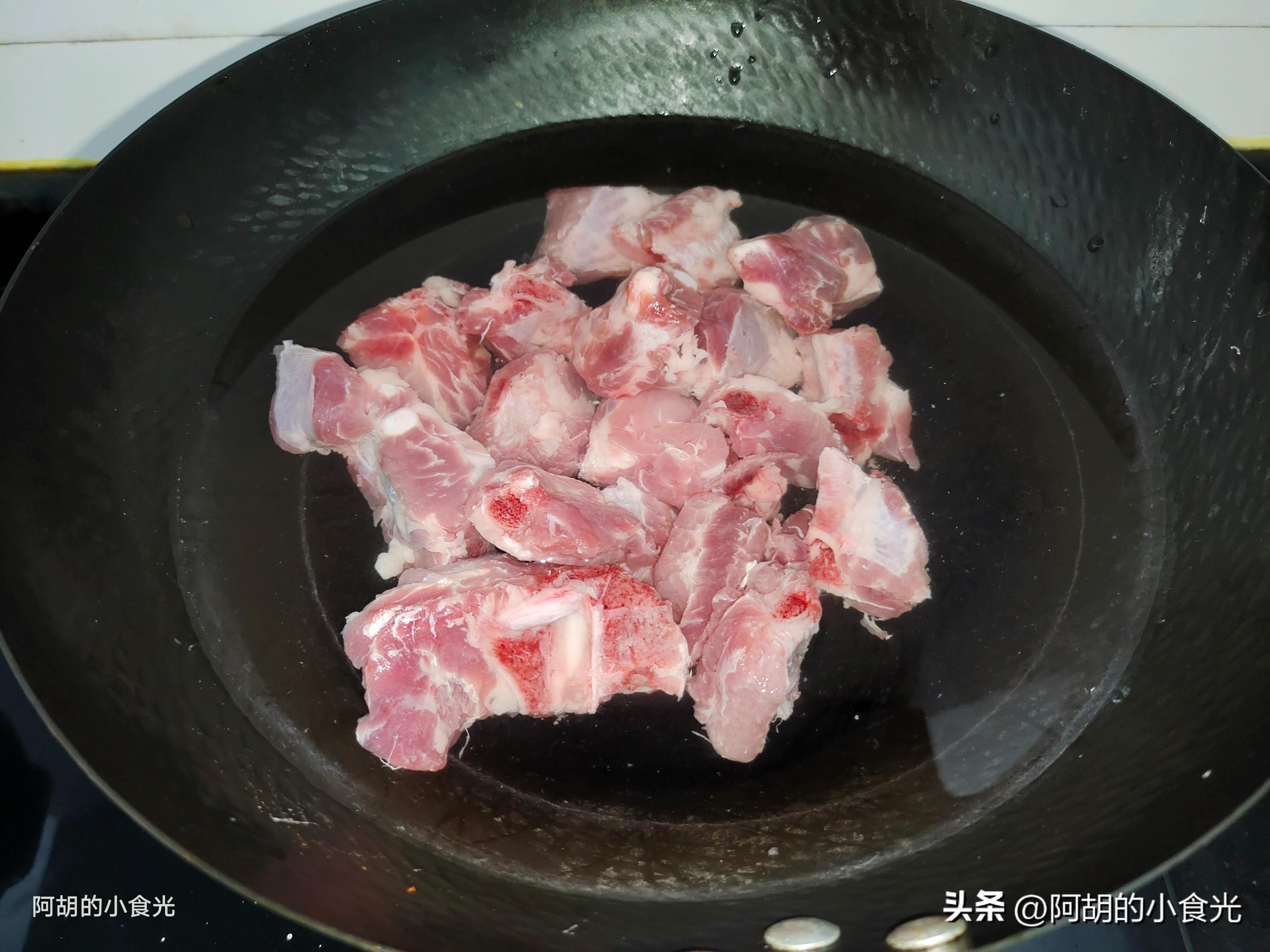 第一步:準備豬排骨兩根,剁成塊後放入清水中浸泡半個小時,幫助去除一些血水減輕異味,而後再涼水下鍋開大火開始焯水,過程中要加入一些薑片和料酒,大火煮個5分鐘左右,撈出後再用溫水沖洗一下排骨,幫助沖洗掉沾染在排骨表面的一些血沫。