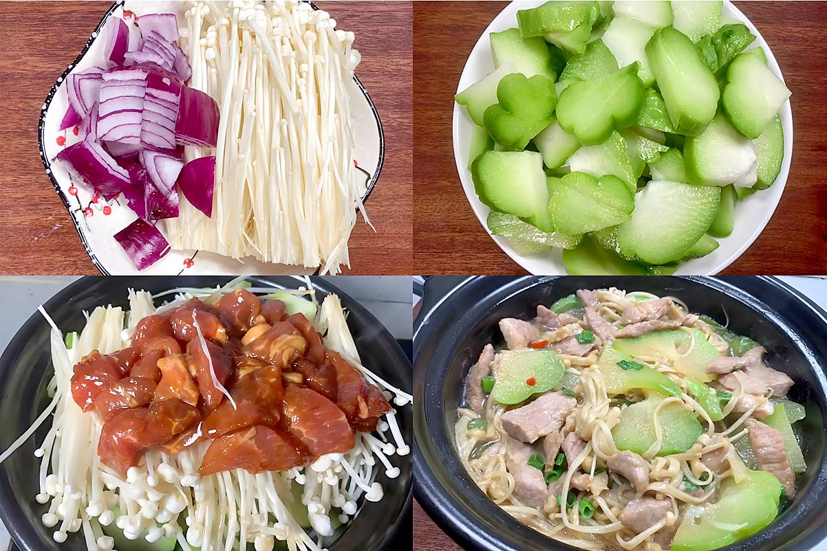 一、洋蔥金針菇牛肉煲——暖身又增免疫