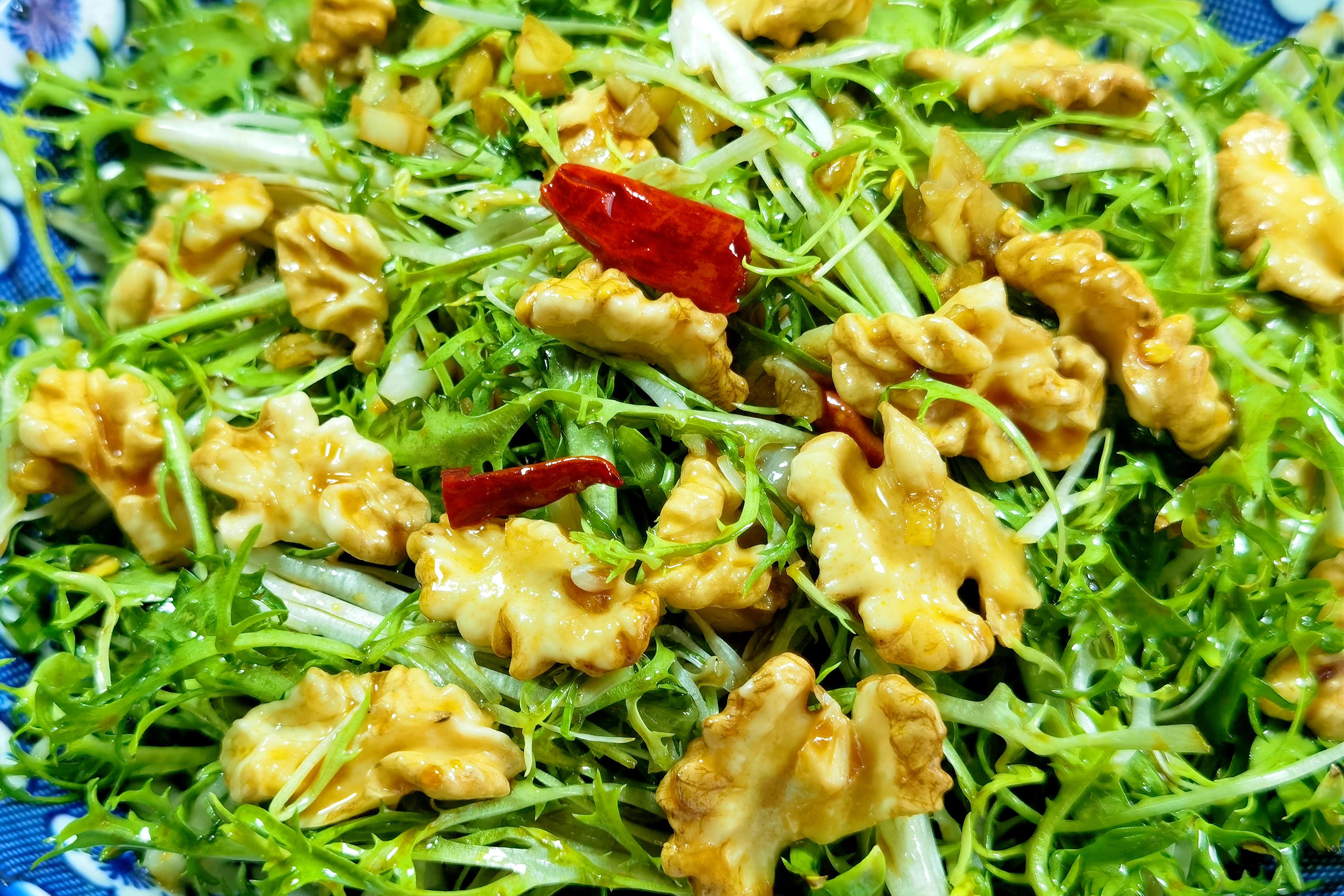 三、涼拌苦菊核桃仁:清熱降火,滋潤身心