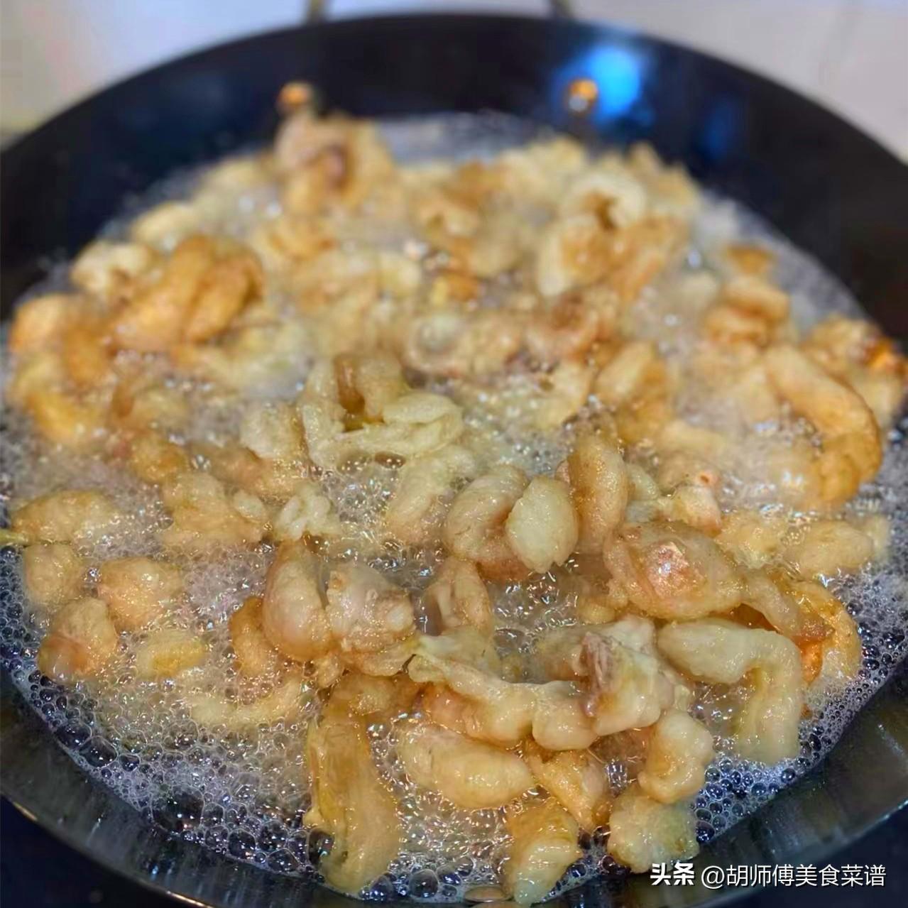 第三步:等豬油渣炸好後立即撈出,等豬油渣完全冷卻後,撒上一點食鹽或者椒鹽,將它們攪拌均勻即可食用。
