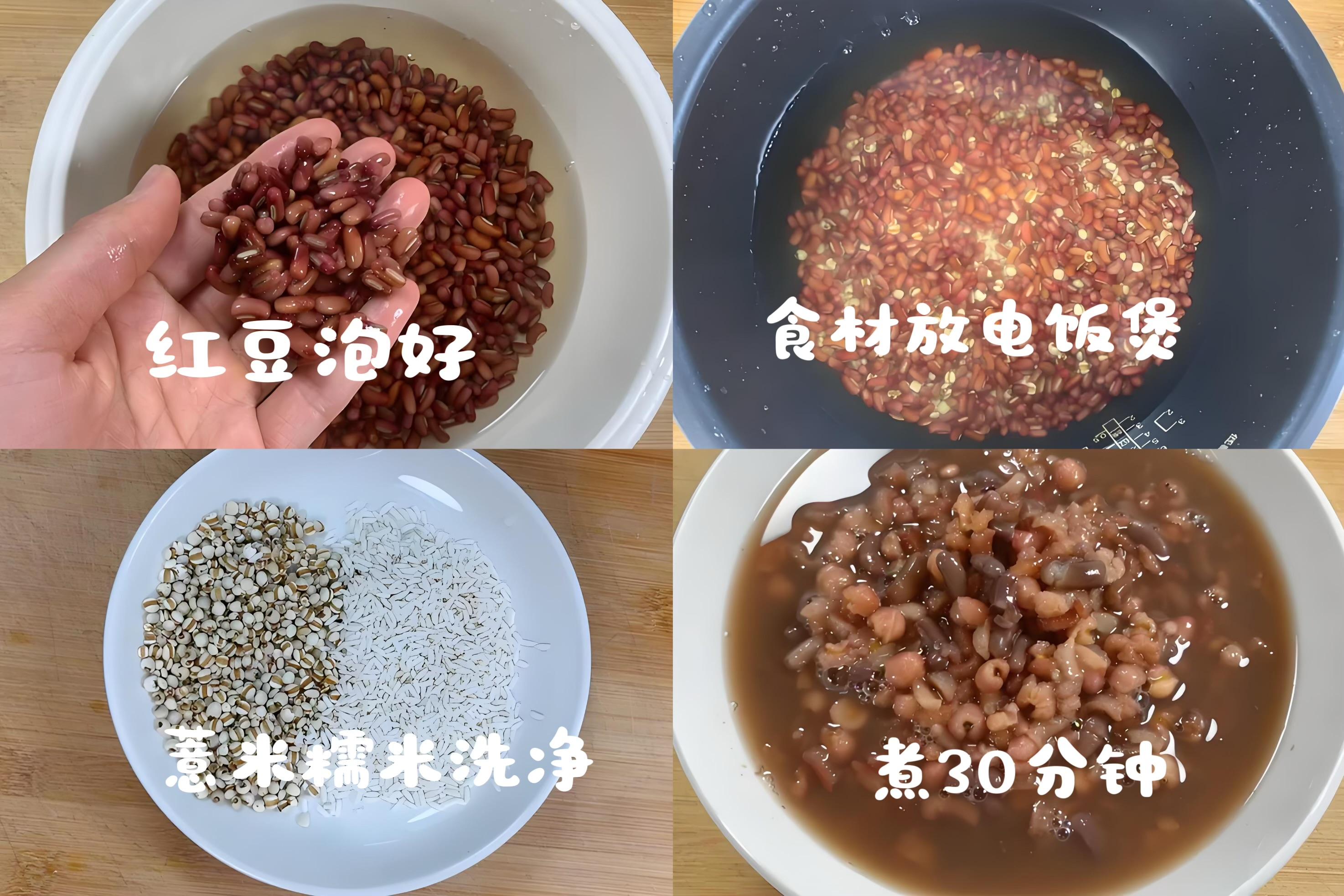 1. 紅豆和薏米提前浸泡2小時(如果時間緊,用高壓鍋煮更省時)。