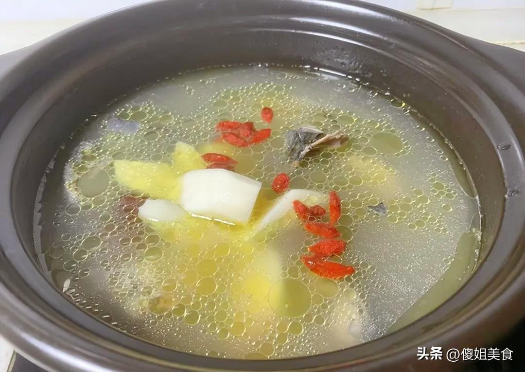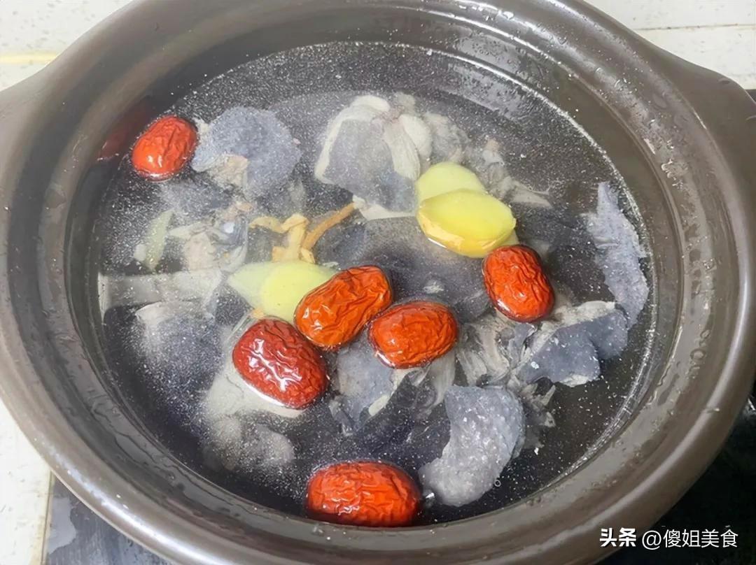 等烏雞燉得差不多了,把山藥塊和去核的紅棗放進去,繼續燉20分鐘左右。直到山藥變得軟糯,用筷子能輕鬆戳透。